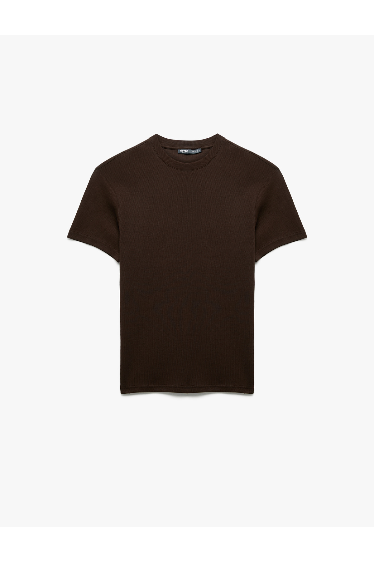 Kısa Kollu Bisiklet Yaka Pamuklu Tok Kumaş Basic Dar Kalıp Tişört Kısa Kollu Bisiklet Yaka Pamuklu Tok Kumaş Basic Dar Kalıp Tişört 6WAM10086HK S