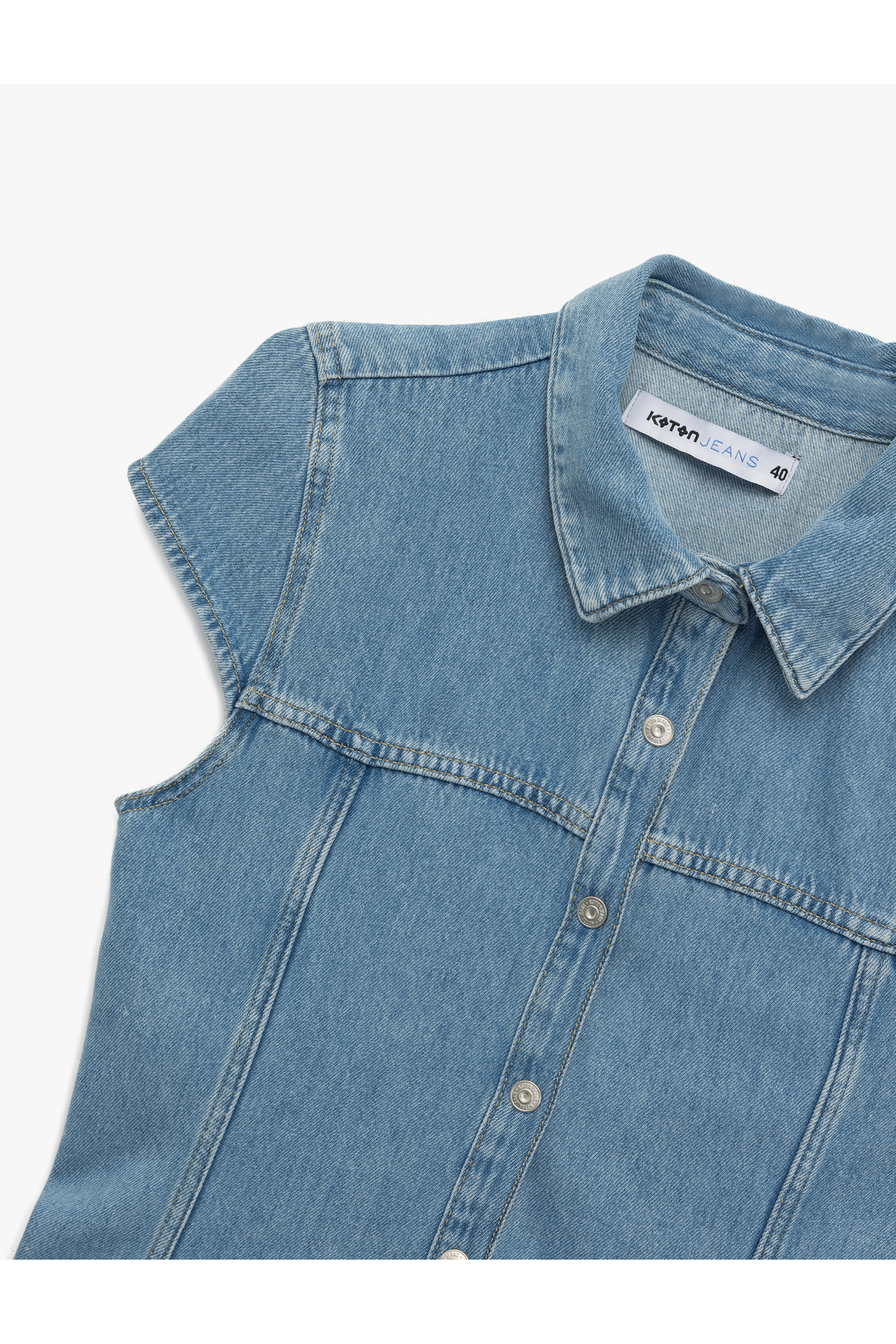 Kısa Kollu Düğmeli Gömlek Yaka Mini Denim Elbise Kısa Kollu Düğmeli Gömlek Yaka Mini Denim Elbise 5SAL80060MD 42