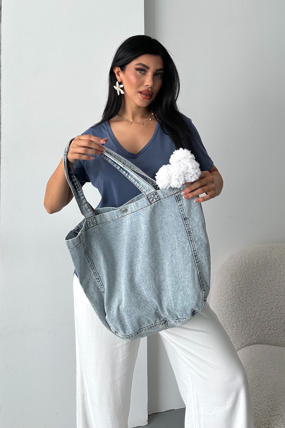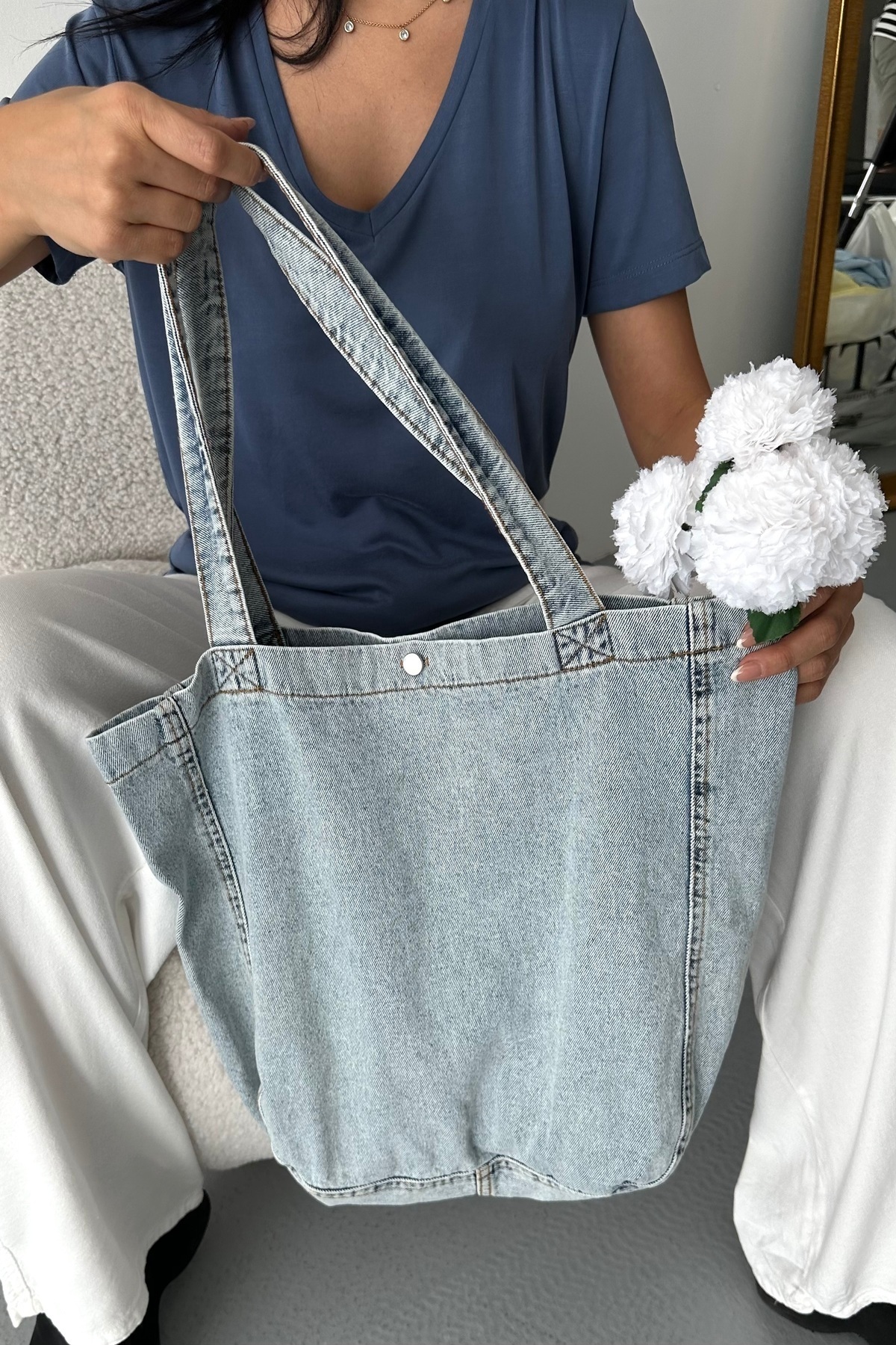 Kadın Kot Çantası Düğme Detaylı Çanta Buz Mavi 7000 Kadın Kot Çantası Düğme Detaylı Çanta Buz Mavi 7000 709453-525Y00157000 Standart
