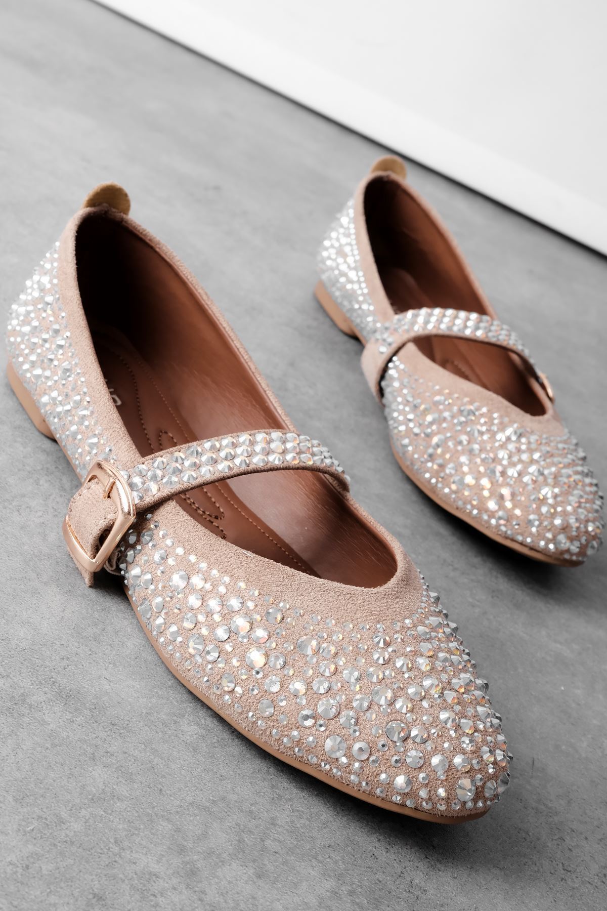 Geresa Kadın Taşlı Bant Detaylı Babet Ayakkabı-vizon Geresa Kadın Taşlı Bant Detaylı Babet Ayakkabı-vizon b3821 40