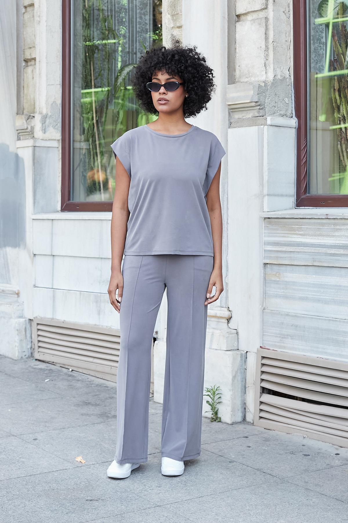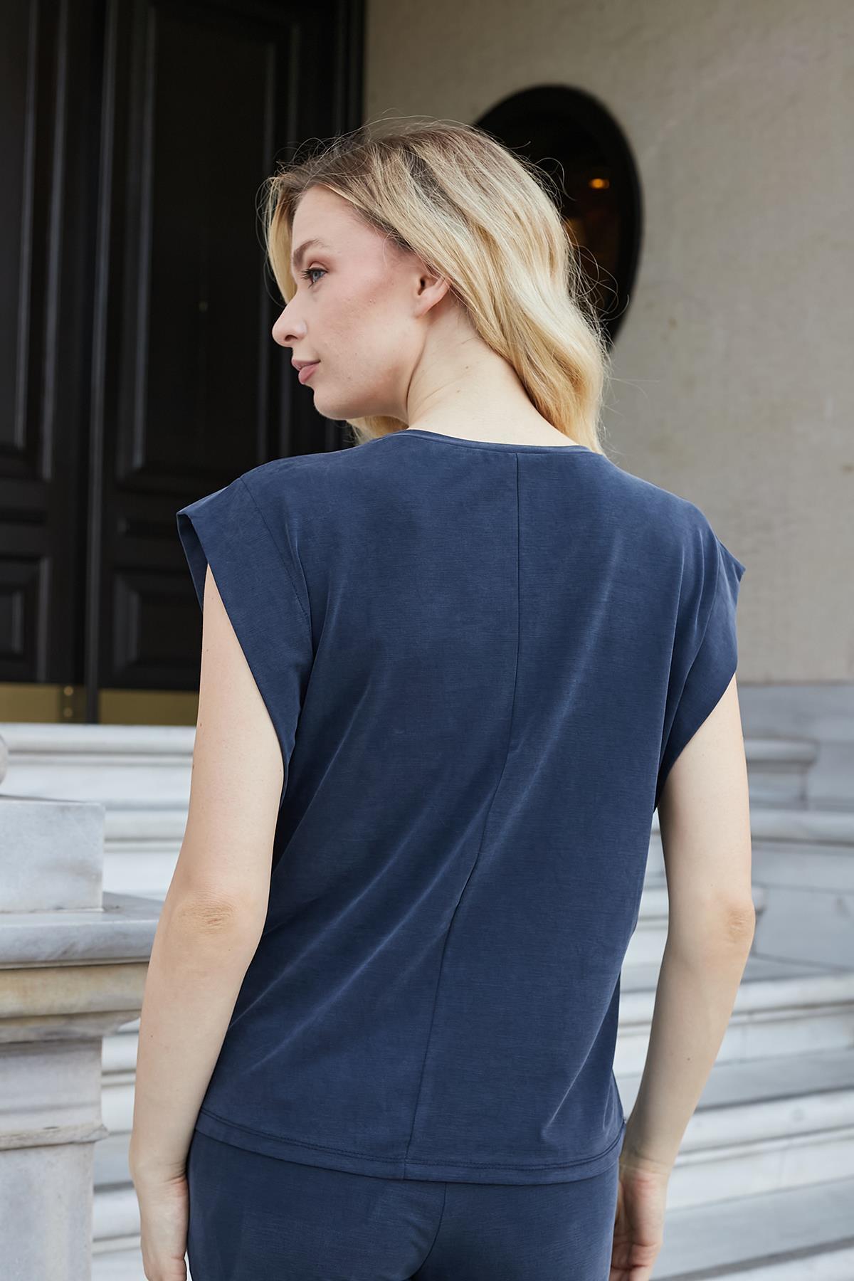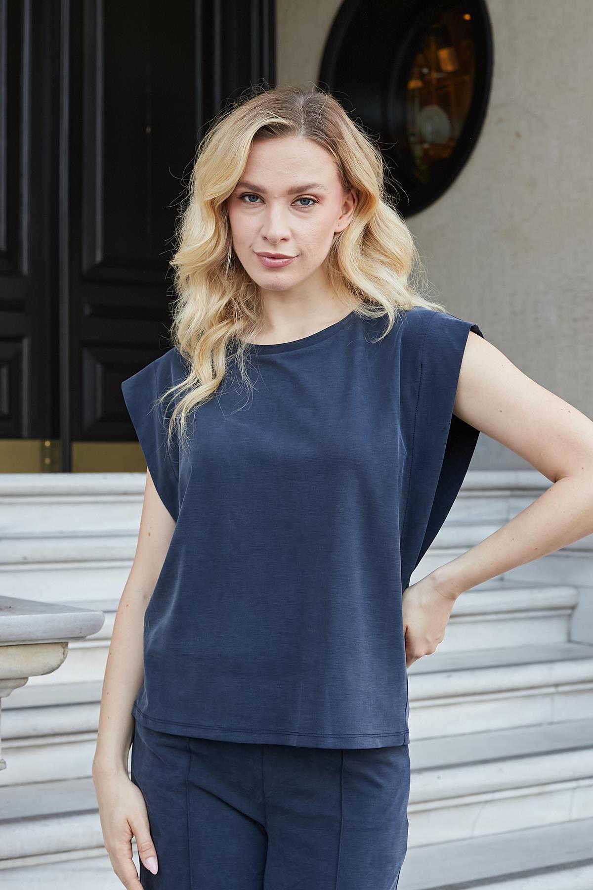 Kadın Modal İpeksi Likralı Kumaş Geniş Sıfır Yaka Düşük Omuzlu T-shirt Bluz-Lacivert Kadın Modal İpeksi Likralı Kumaş Geniş Sıfır Yaka Düşük Omuzlu T-shirt Bluz-Lacivert 20533 XL