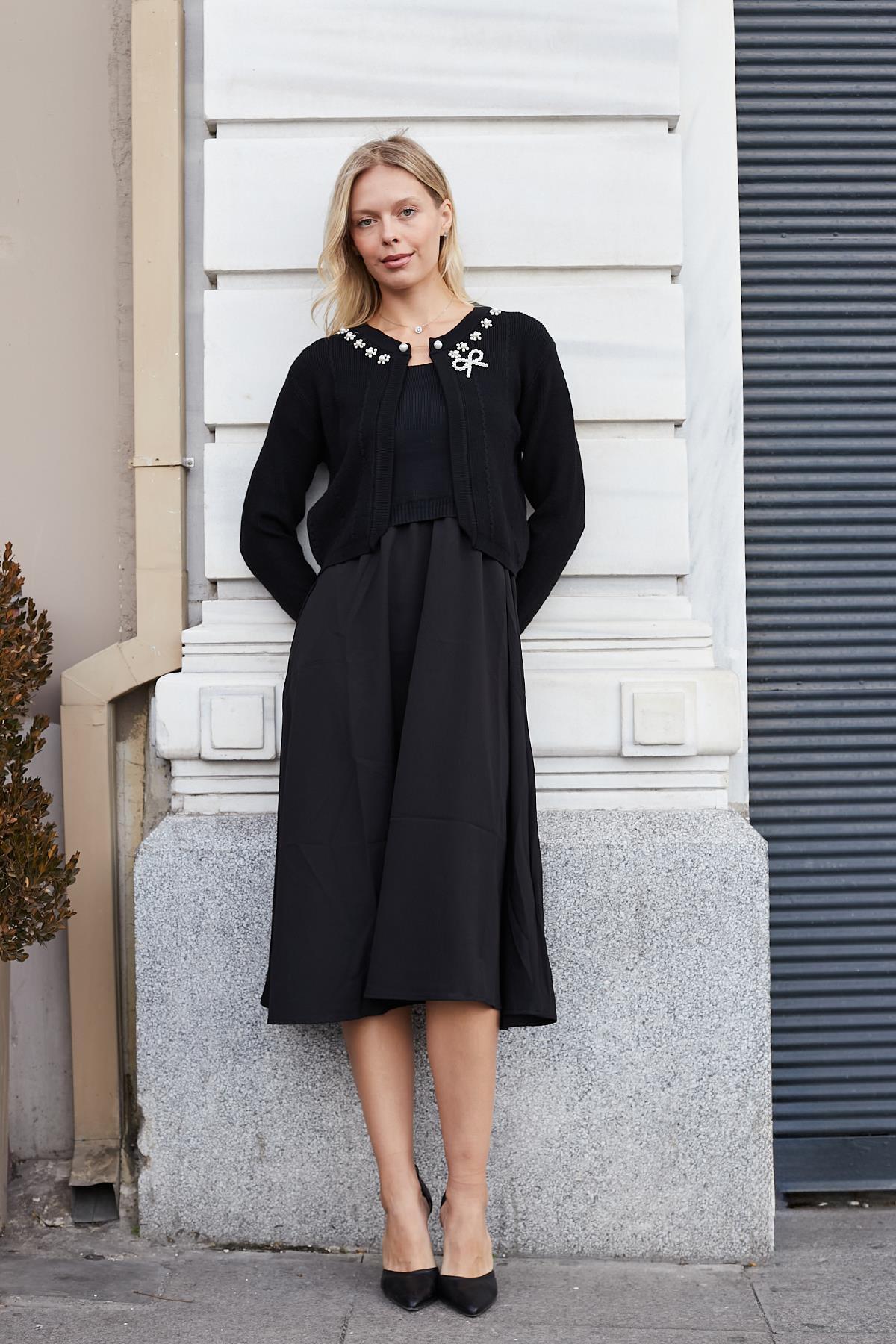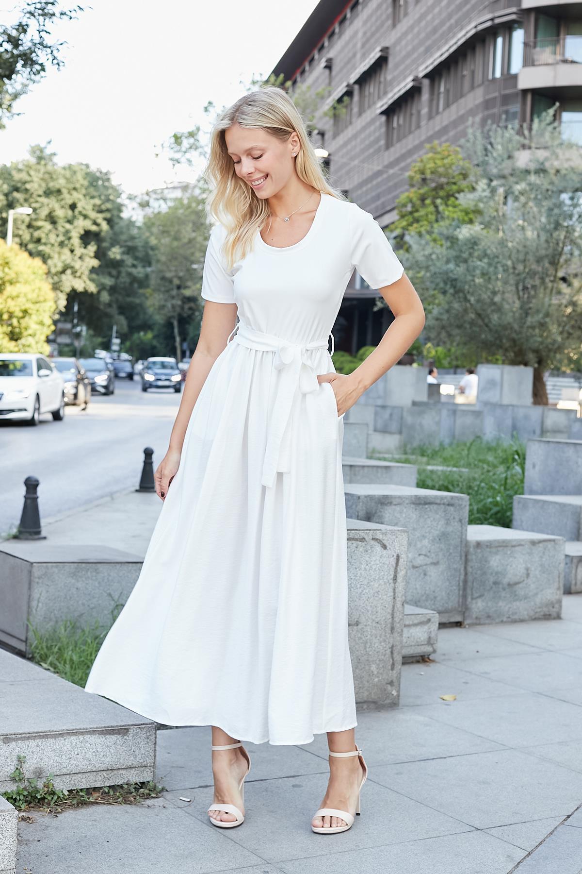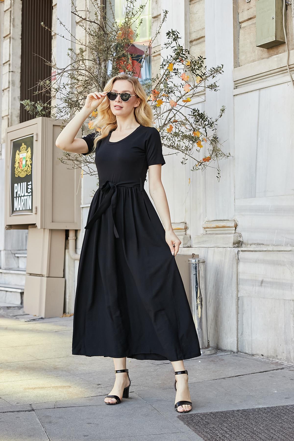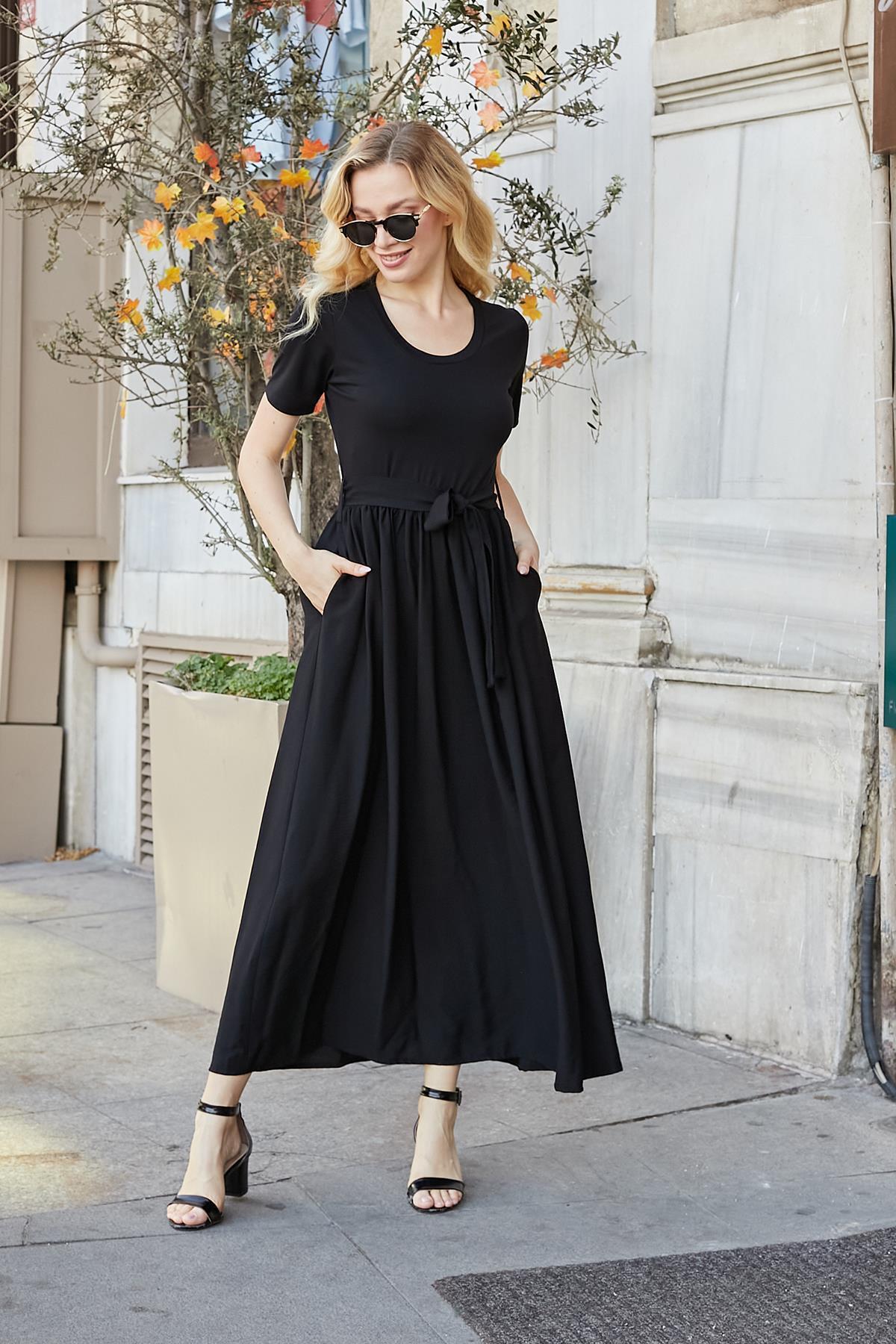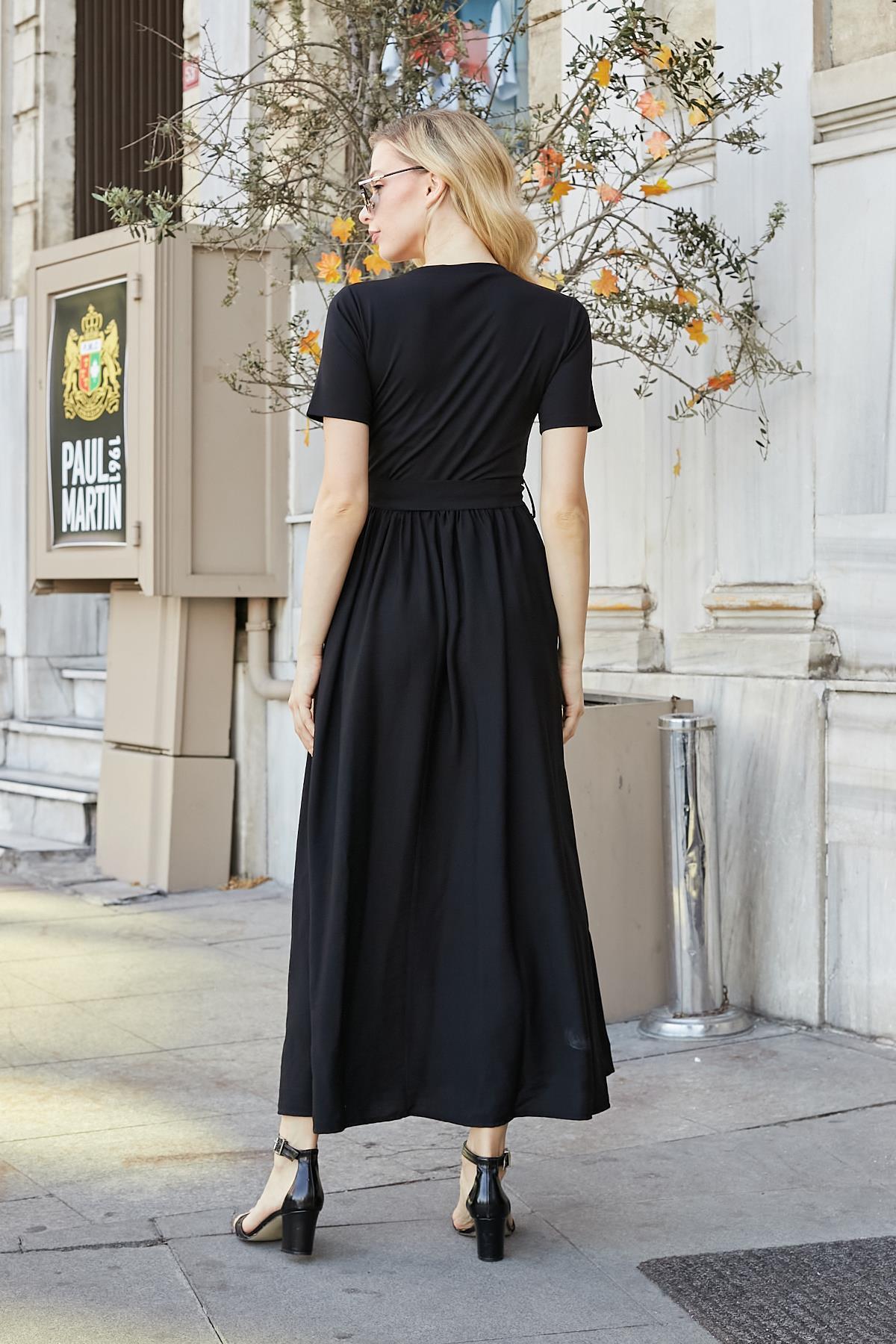 Kadın Keten Detaylı Üst Kısmı Likralı Kısa Kol Beli Büzgülü Uzun Elbise-Siyah Kadın Keten Detaylı Üst Kısmı Likralı Kısa Kol Beli Büzgülü Uzun Elbise-Siyah 50229 42