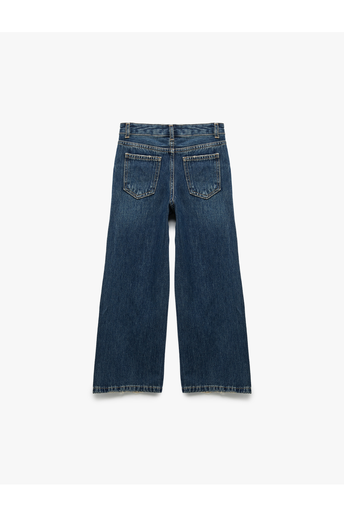 Beli Bağcıklı Pamuklu Geniş Paça Denim Pantolon Beli Bağcıklı Pamuklu Geniş Paça Denim Pantolon 6WKG40039AD 13-14 Yaş