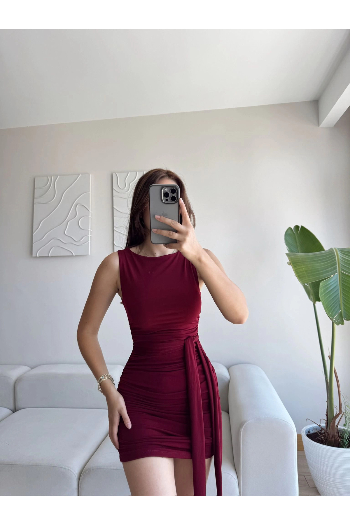 Kuşaklı Sandy Elbise - BORDO Kuşaklı Sandy Elbise - BORDO P17630S3443 L