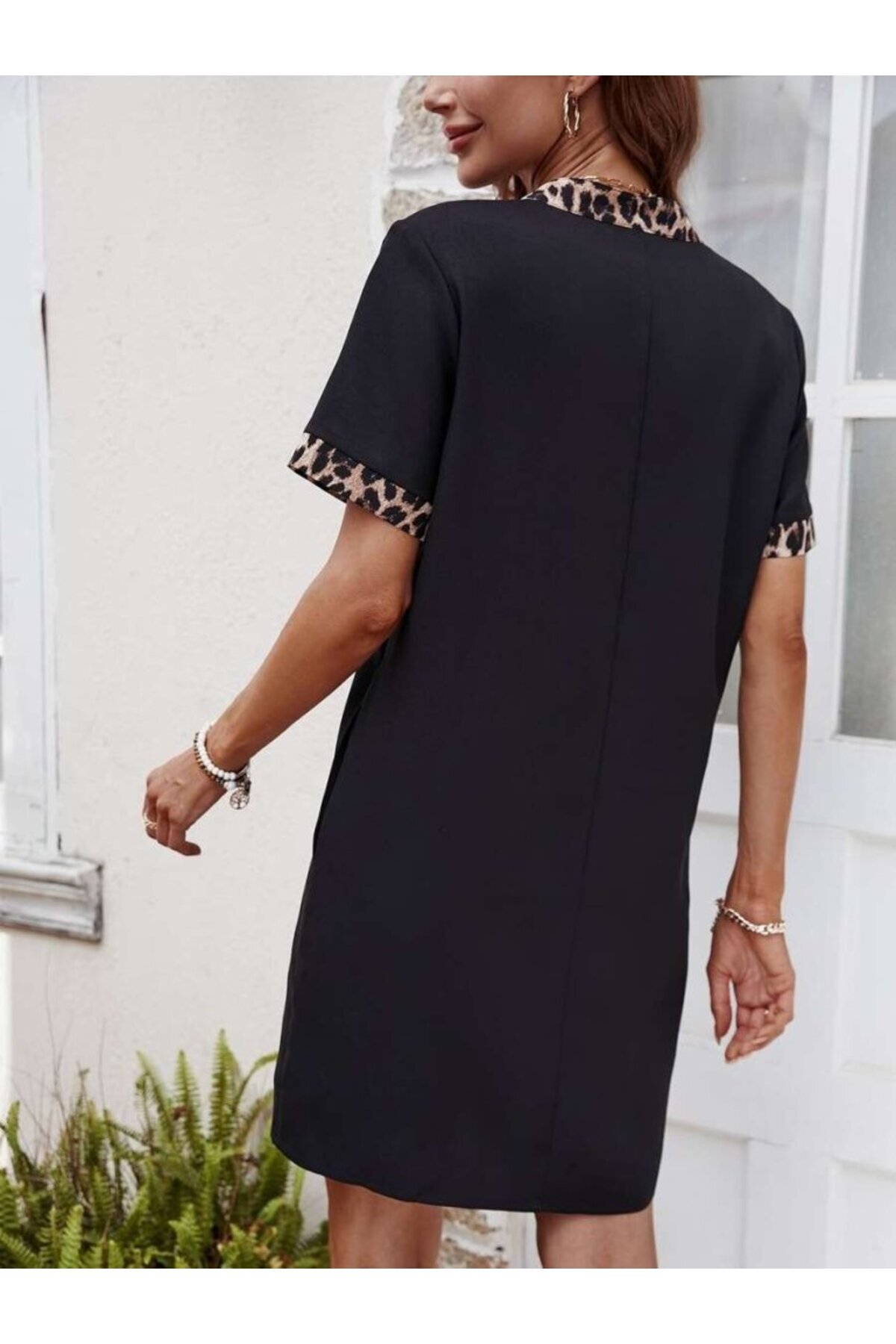 Kadın Kısa Kollu V Yakalı Leopar Desen Detaylı Modal Elbise Kadın Kısa Kollu V Yakalı Leopar Desen Detaylı Modal Elbise 169380 XL