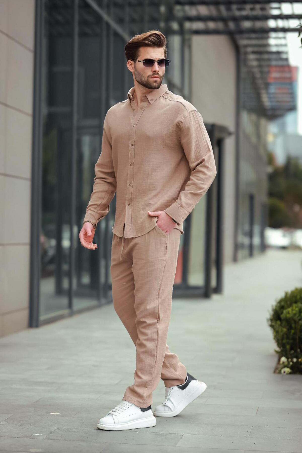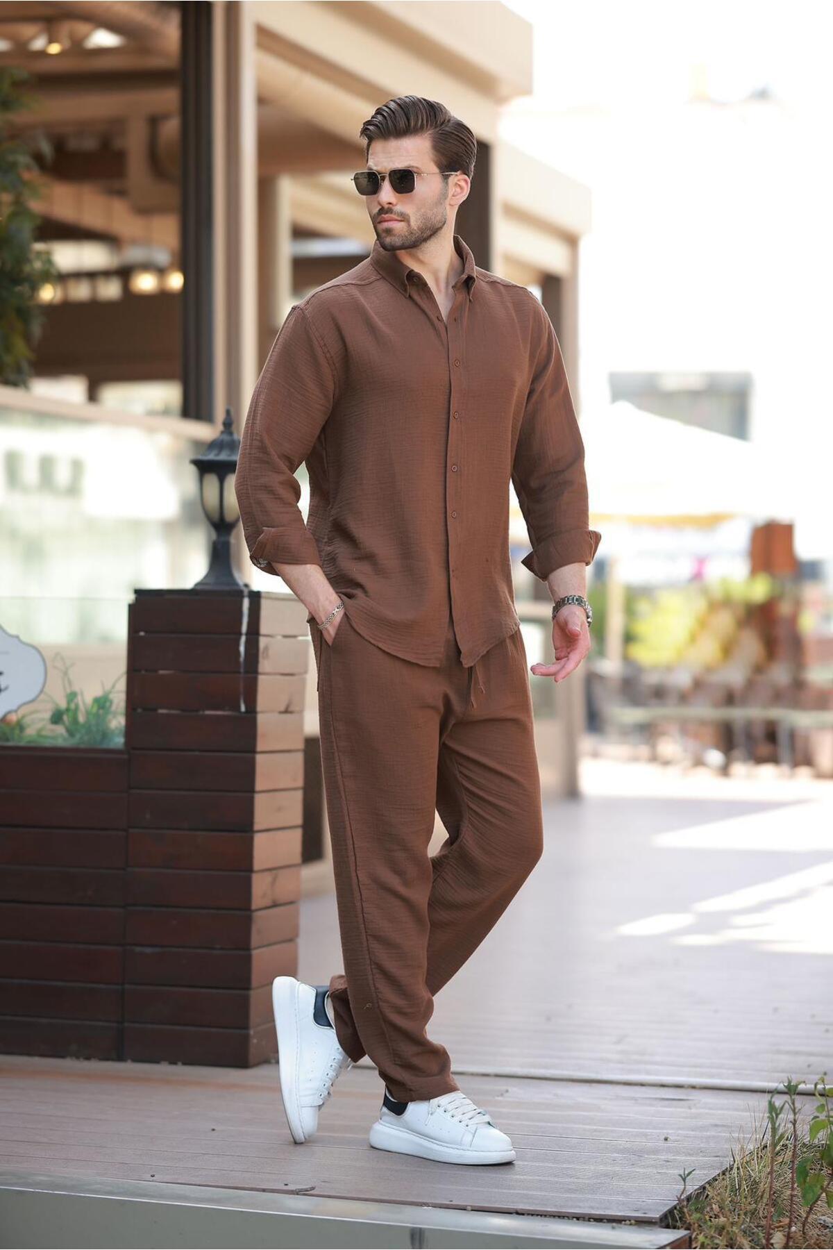 Füme Gömlek Pantolon Erkek İkili Takım E7322 Füme Gömlek Pantolon Erkek İkili Takım E7322 2XL