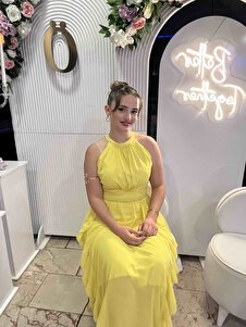 Sarı Halter Yaka Astarlı Elbise Sarı Halter Yaka Astarlı Elbise 8561 L