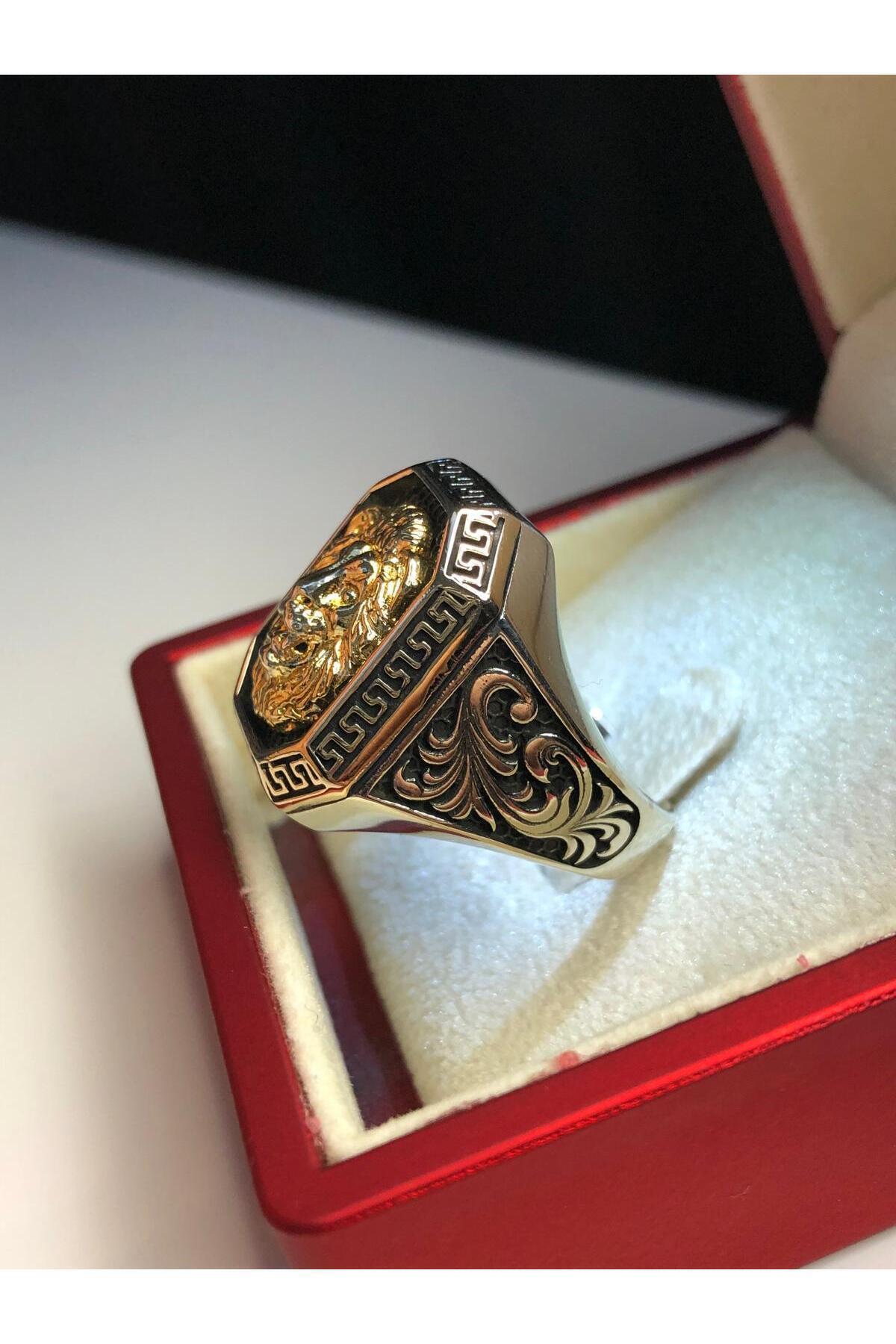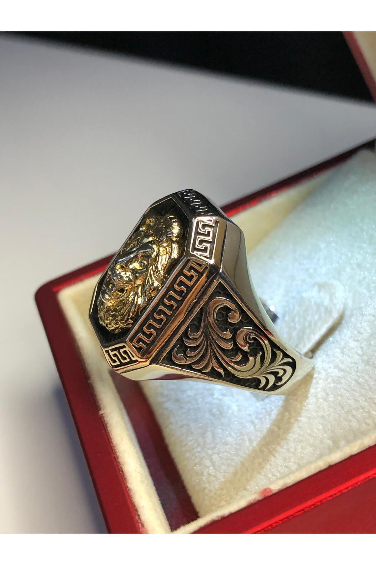 Erkek Gümüş Yüzük - Aslan (LİON) Altın Renk Işlemeli Grek Desen Özel Seri • Işıklı Kutuda Yüzük Erkek Gümüş Yüzük - Aslan (LİON) Altın Renk Işlemeli Grek Desen Özel Seri • Işıklı Kutuda Yüzük Vogaslanarigdösgmşerkyzk 30