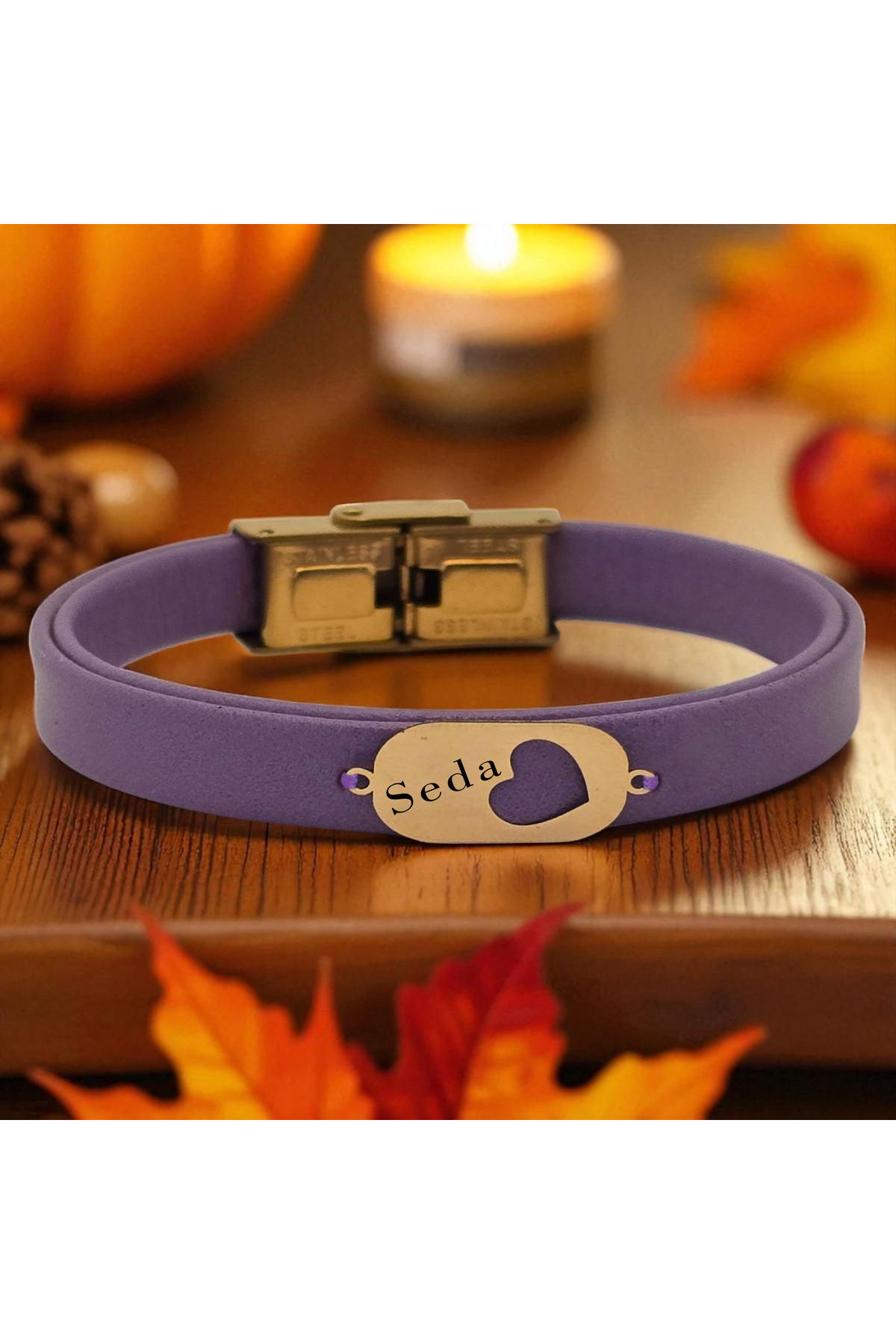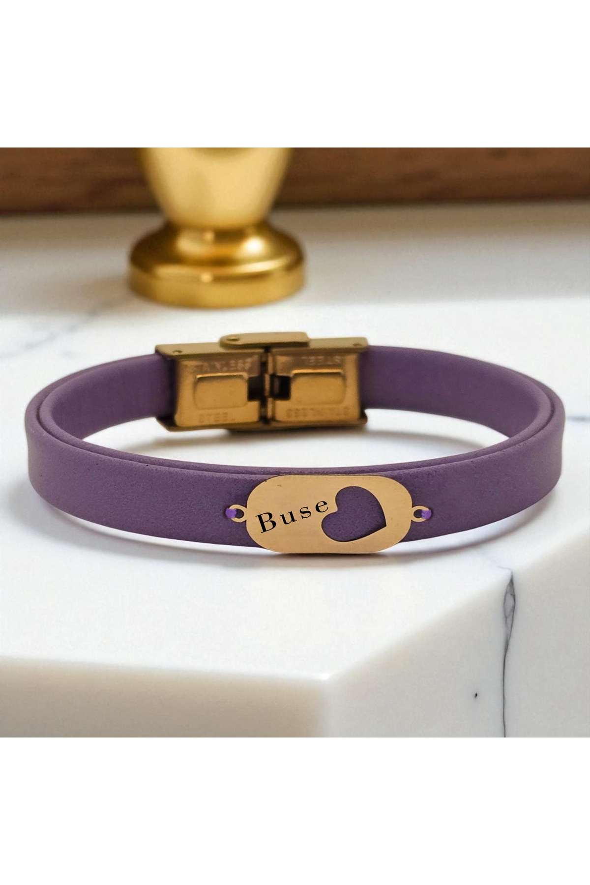 Altın Plakalı 14 Ayar Şeyma İsmine Özel Kalp Motifli Hakiki Mor Derili Hediye Bileklik-558isim Altın Plakalı 14 Ayar Şeyma İsmine Özel Kalp Motifli Hakiki Mor Derili Hediye Bileklik-558isim 558-mlka-fbfg-MO1 22 cm