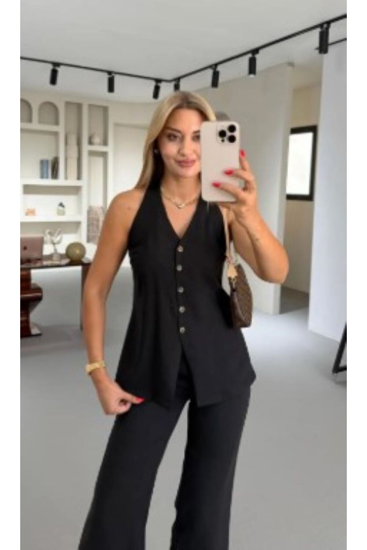 Kemik Düğmeli Sırt Detay Siyah Yelek Kemik Düğmeli Sırt Detay Siyah Yelek YLK-0063-SYH 42