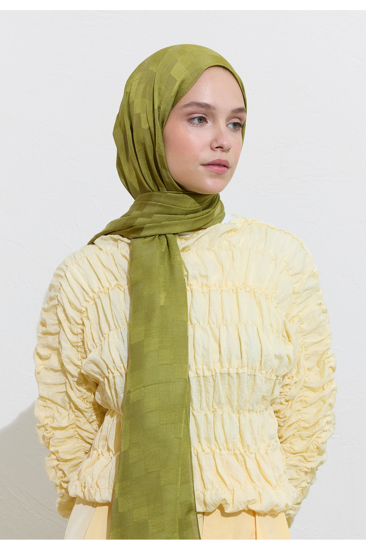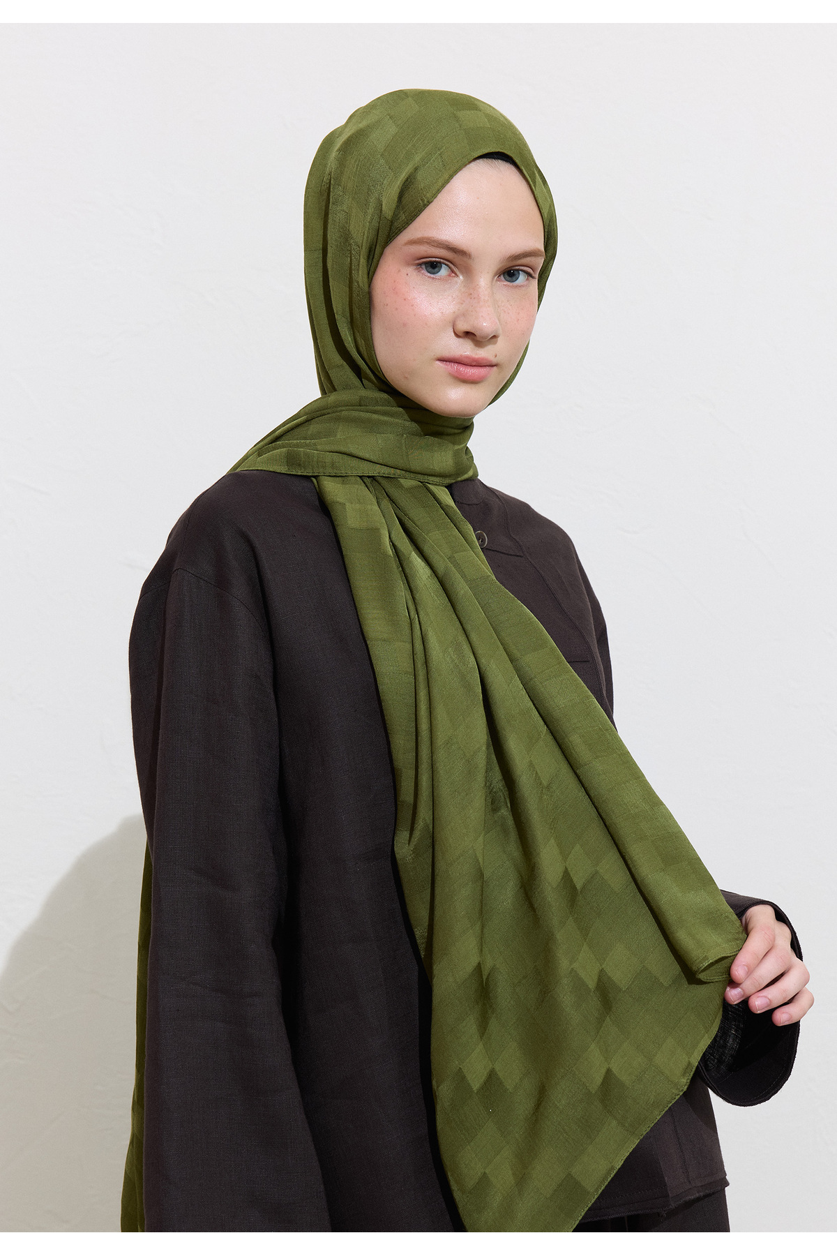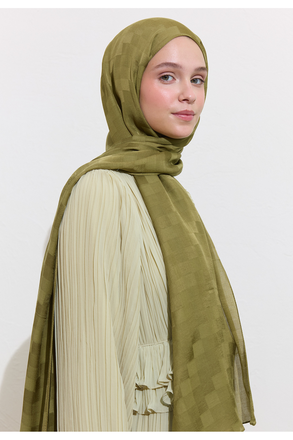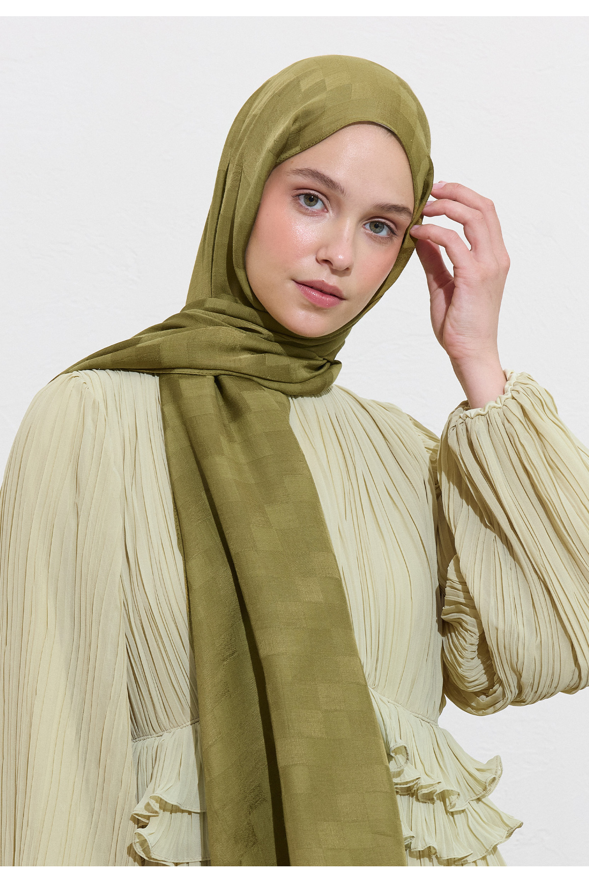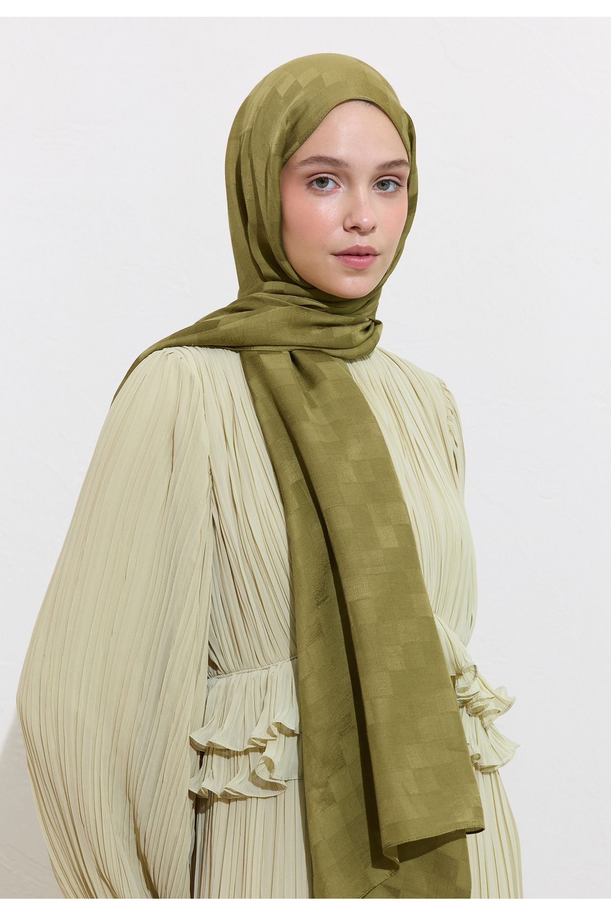 Nori Ipeksi Jakar Şal Zeytin Yeşili Nori Ipeksi Jakar Şal Zeytin Yeşili FS25DZS0000006 تک سایز