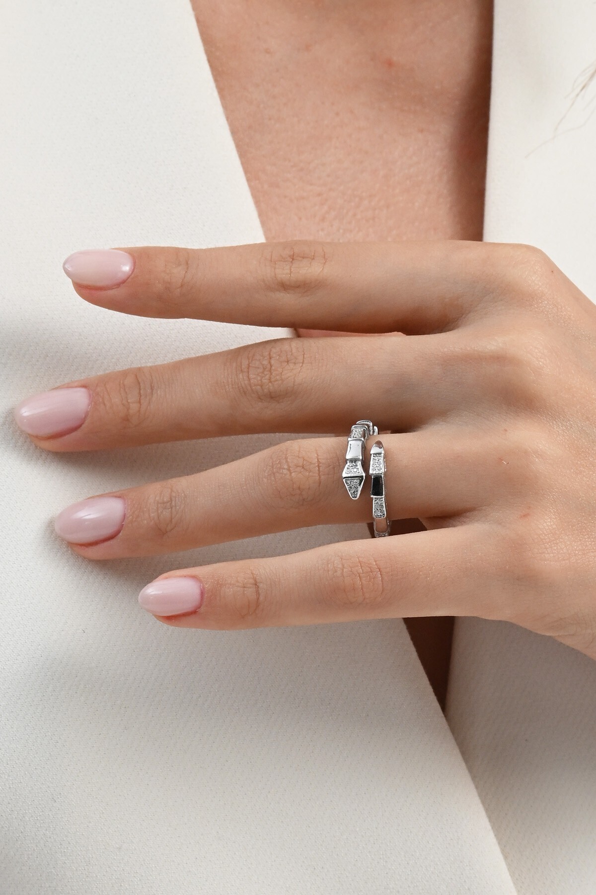 Gümüş rodyumlu renkli zirkon taşlı asimetrik halkalar yüzük Gümüş rodyumlu renkli zirkon taşlı asimetrik halkalar yüzük SGTL12985 18
