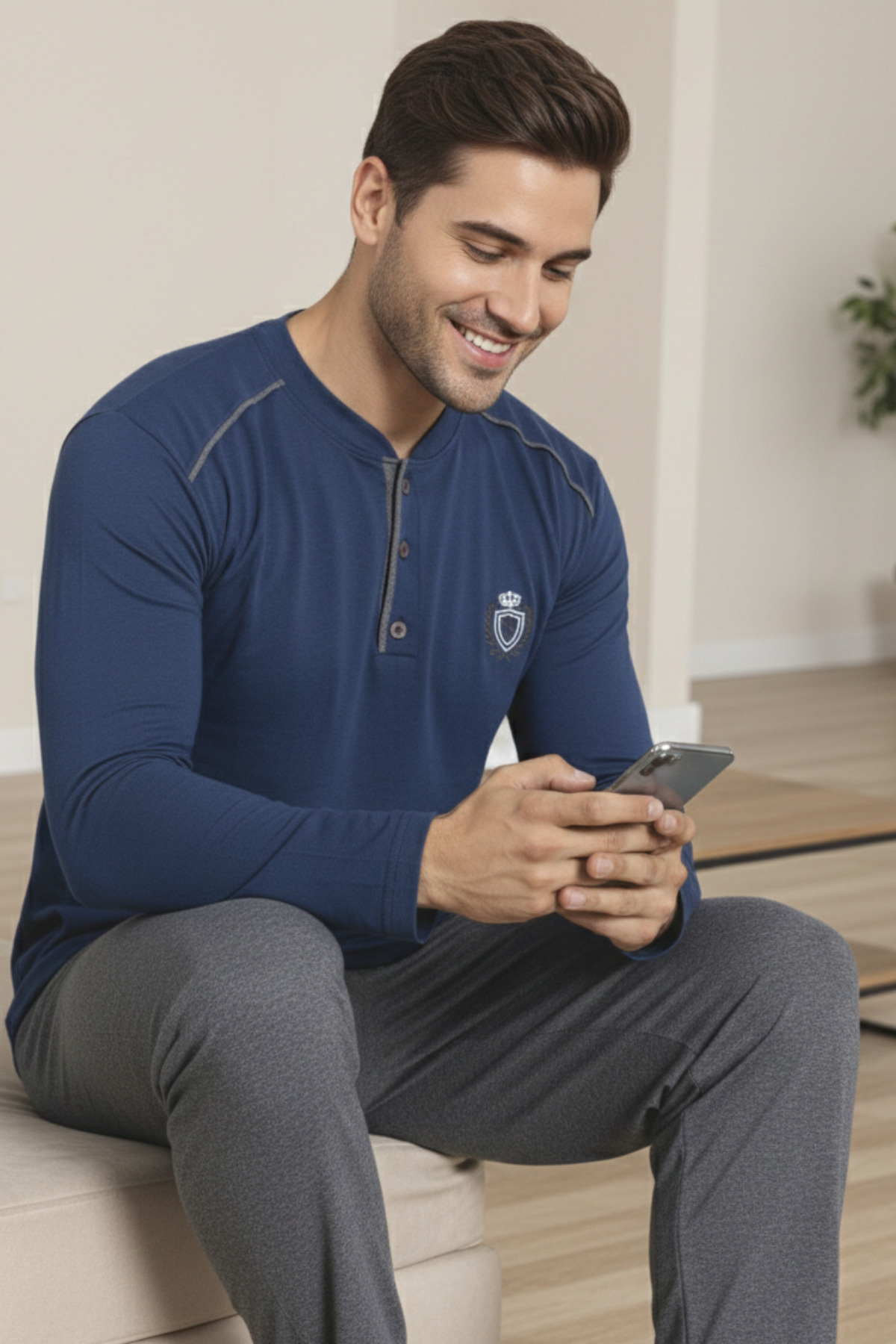 Erkek Uzun Kollu Örme Pijama Takımı Erkek Uzun Kollu Örme Pijama Takımı 7505 2XL