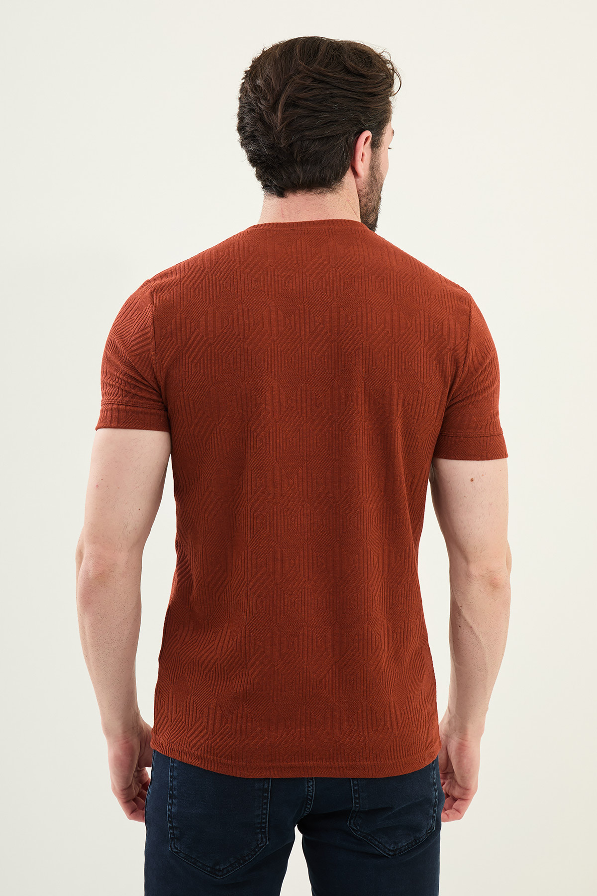 Desenli Slim Fit Bisiklet Yaka Erkek T-Shirt Kiremit - 36861.25Y Desenli Slim Fit Bisiklet Yaka Erkek T-Shirt Kiremit - 36861.25Y 2XL
