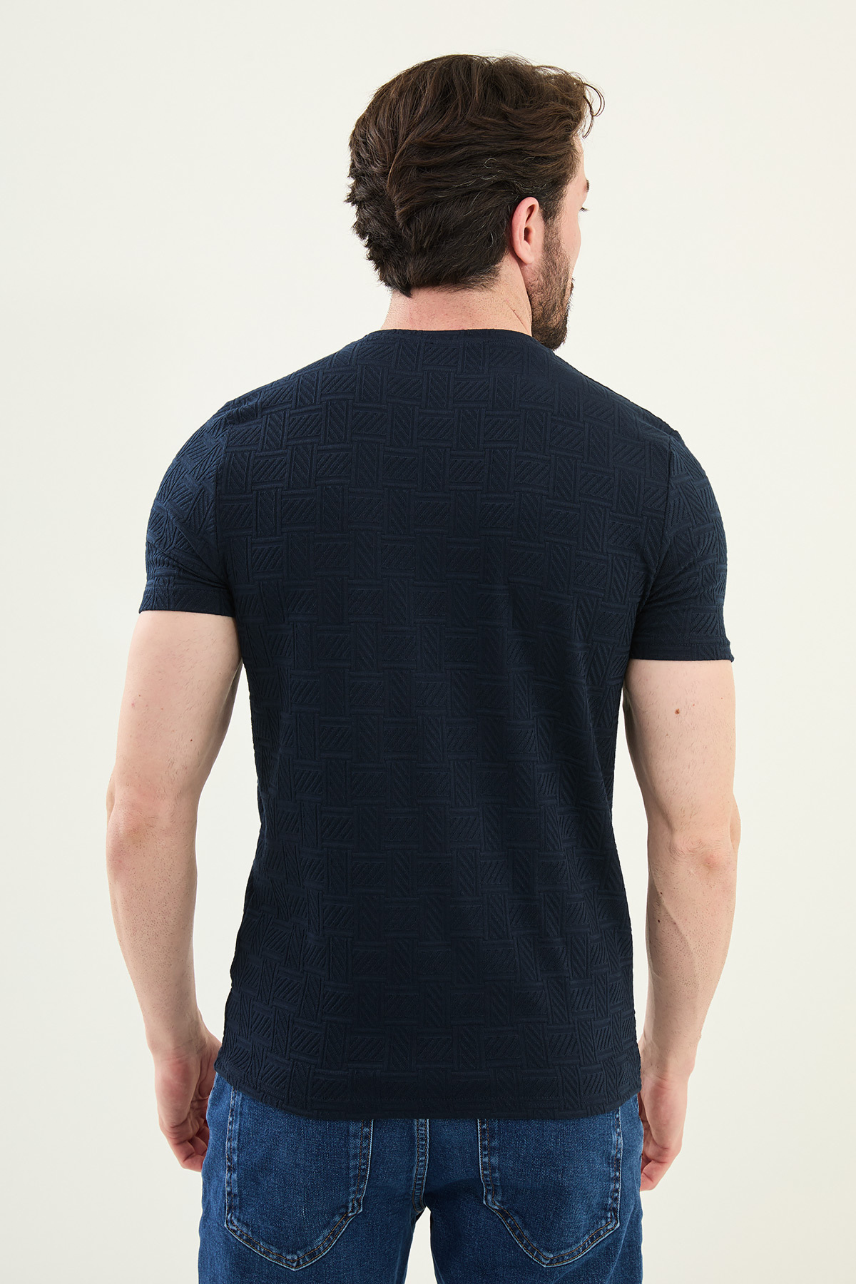 Desenli Slim Fit Bisiklet Yaka Erkek T-Shirt Lacivert - 36862.25Y Desenli Slim Fit Bisiklet Yaka Erkek T-Shirt Lacivert - 36862.25Y 2XL