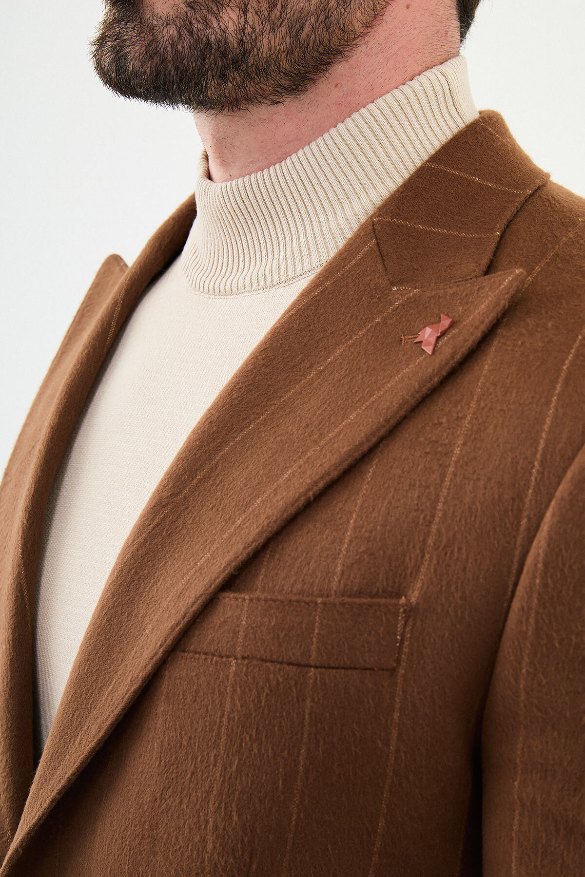 Çizgili Slim Fit Torba Cep Geniş Yaka Yün Erkek Ceket Kamel - 40392.24K Çizgili Slim Fit Torba Cep Geniş Yaka Yün Erkek Ceket Kamel - 40392.24K 56