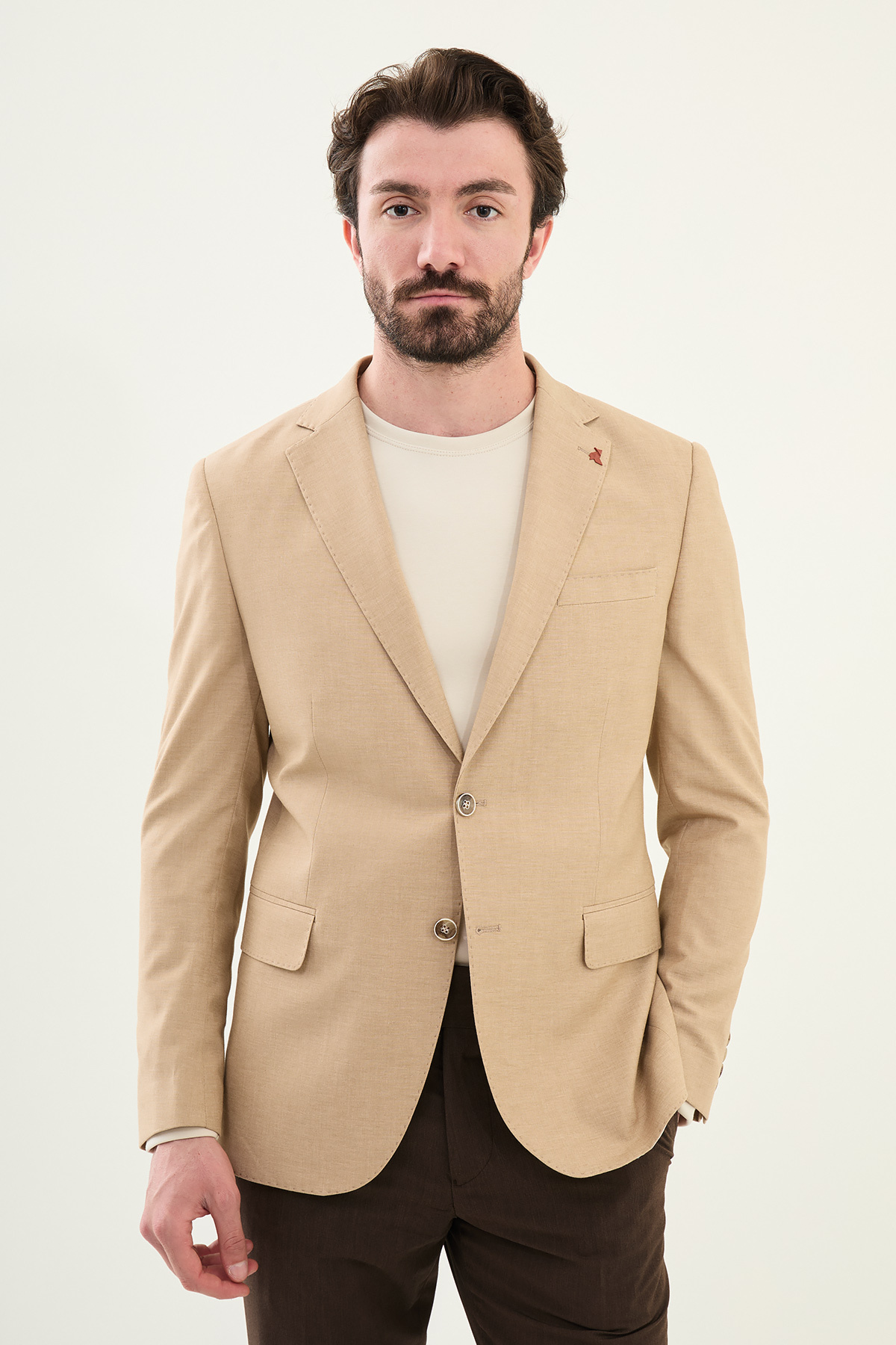 Düz Slim Fit Mono Yaka Keten Erkek Ceket Bej - 41455.25Y Düz Slim Fit Mono Yaka Keten Erkek Ceket Bej - 41455.25Y 56