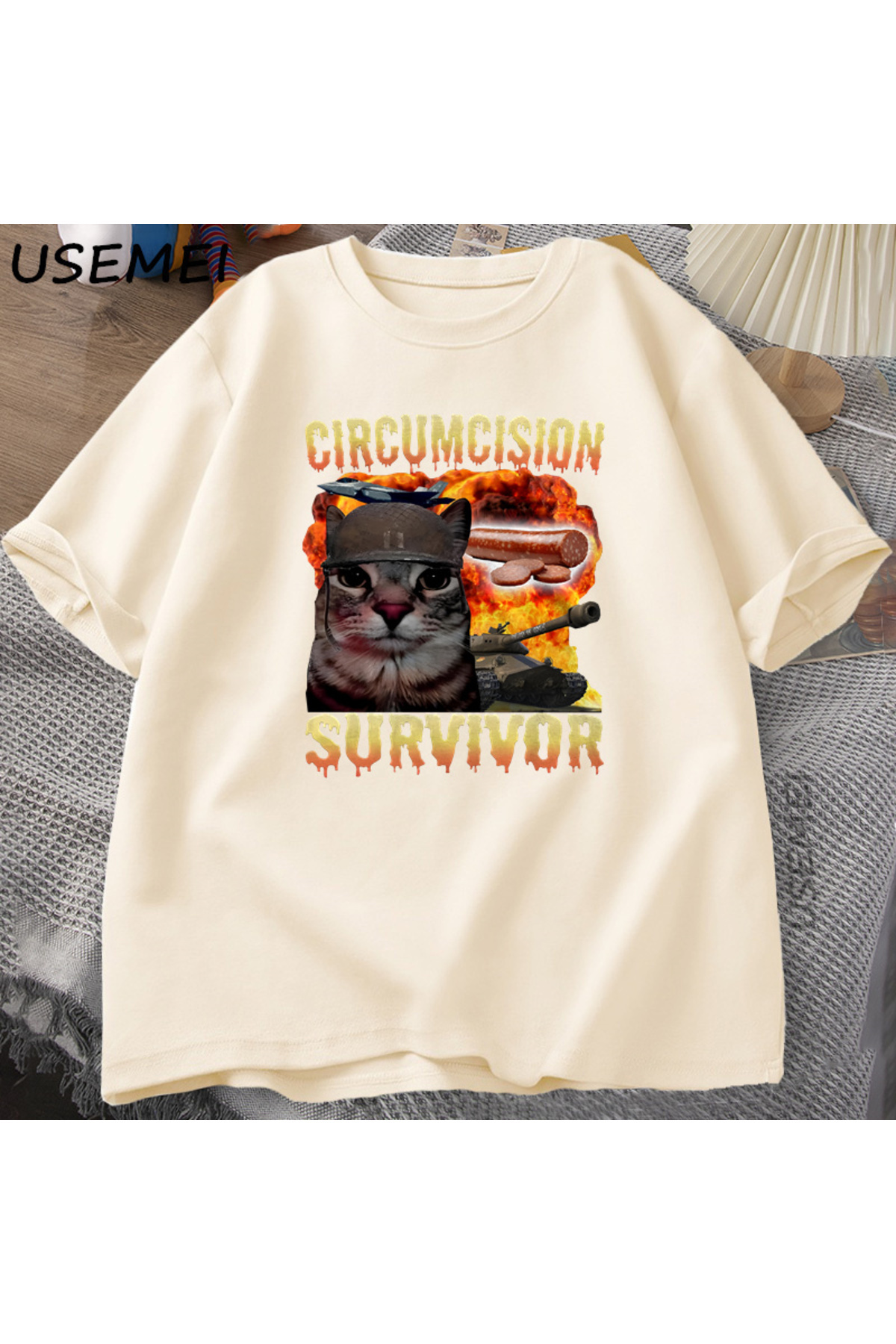 Sünnet Survivor Komik Kedi Meme T-shirt Brainrot TUnhinged Giysiler Garip Tee 2888 Sünnet Survivor Komik Kedi Meme T-shirt Brainrot TUnhinged Giysiler Garip Tee 2888 USSEMEI-2888 4XL-5XL