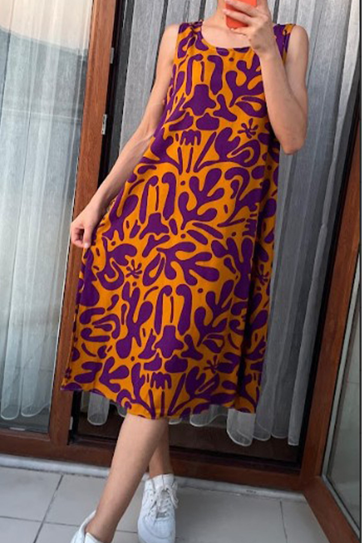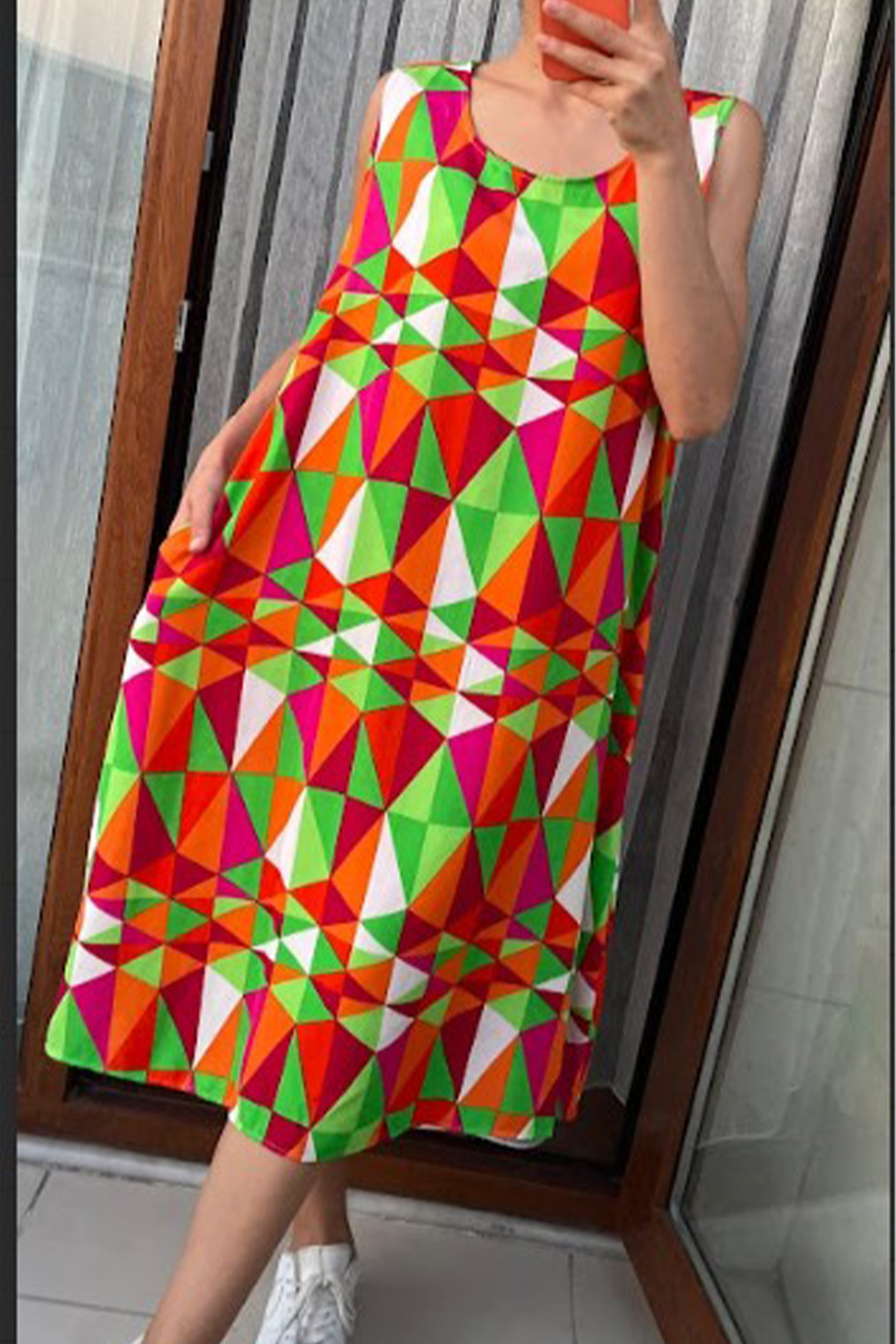 Kadın Fuşya Retro Desenli Kolsuz Midi Elbise Kadın Fuşya Retro Desenli Kolsuz Midi Elbise V9-VW XL/2XL