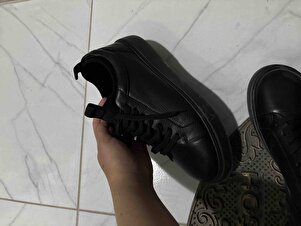 Erkek Siyah Bağcıklı Kalın Tabanlı Hakiki Deri Sneaker,Kışlık Spor Ayakkabı 25WFD610518 Erkek Siyah Bağcıklı Kalın Tabanlı Hakiki Deri Sneaker,Kışlık Spor Ayakkabı 25WFD610518 45
