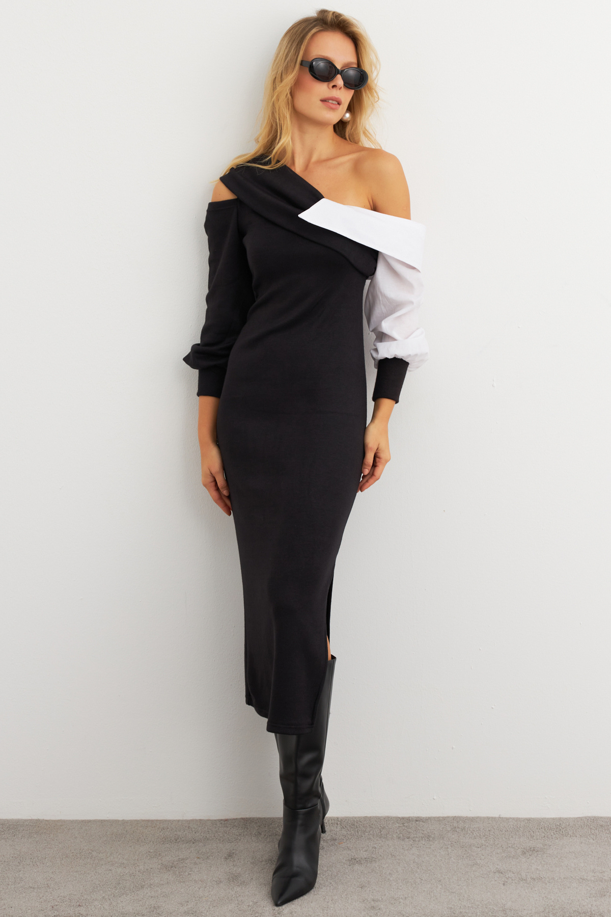 Kadın Beyaz Beli Lastikli Midi Müslin Elbise FRO1001 Kadın Beyaz Beli Lastikli Midi Müslin Elbise FRO1001 XL