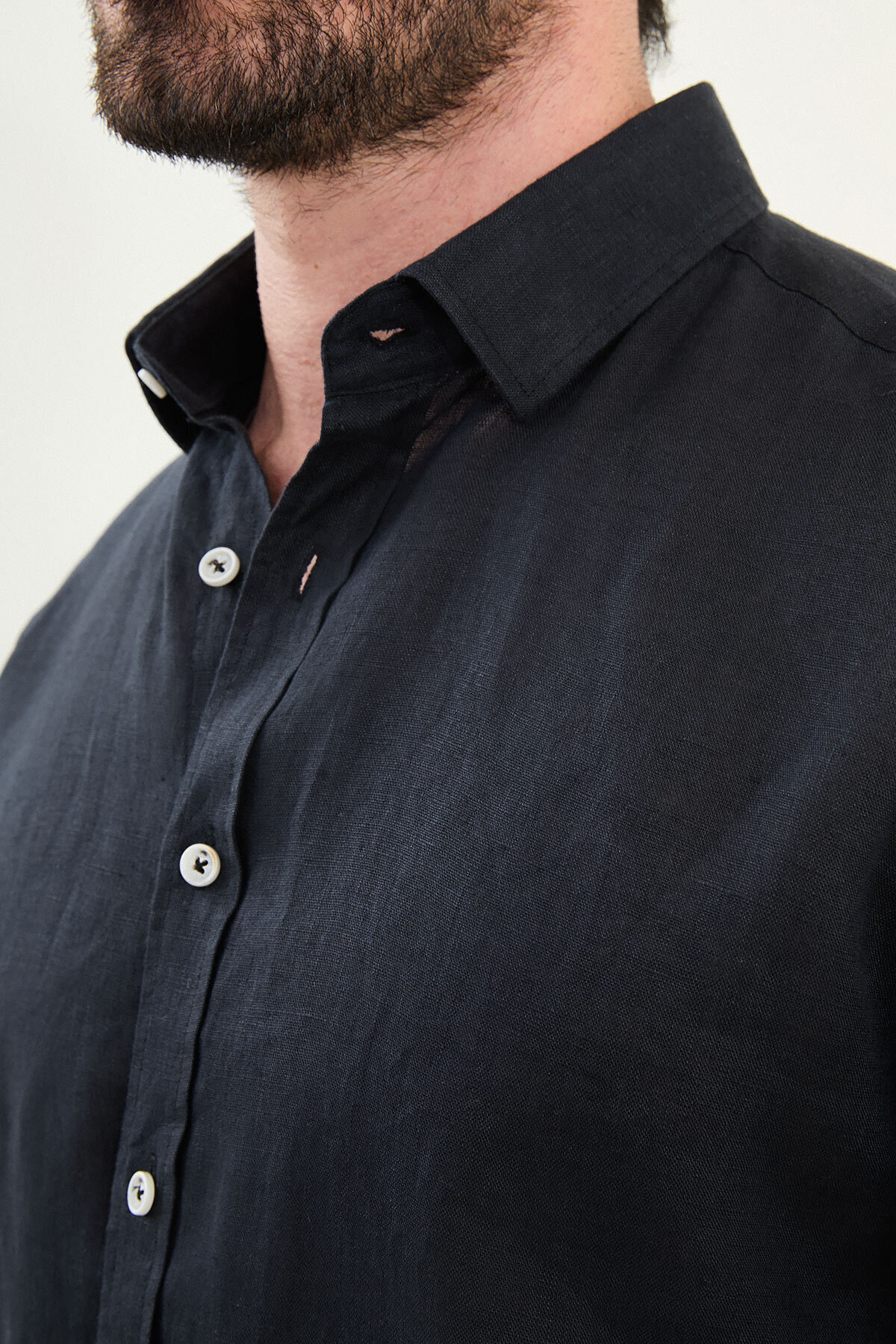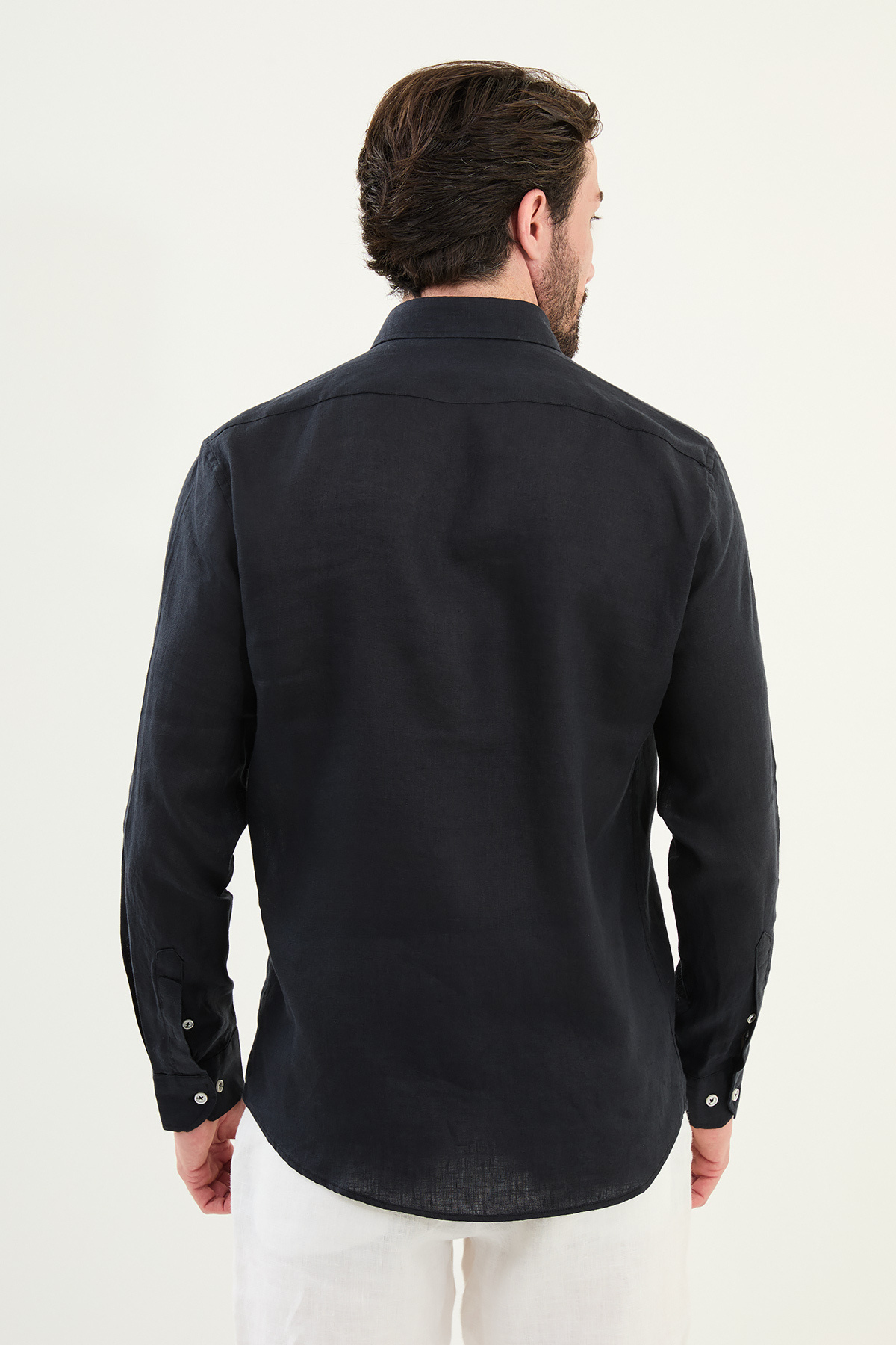 Düz Slim Fit Uzun Kollu %100 Keten Erkek Gömlek Siyah - 27079.25Y Düz Slim Fit Uzun Kollu %100 Keten Erkek Gömlek Siyah - 27079.25Y 2XL
