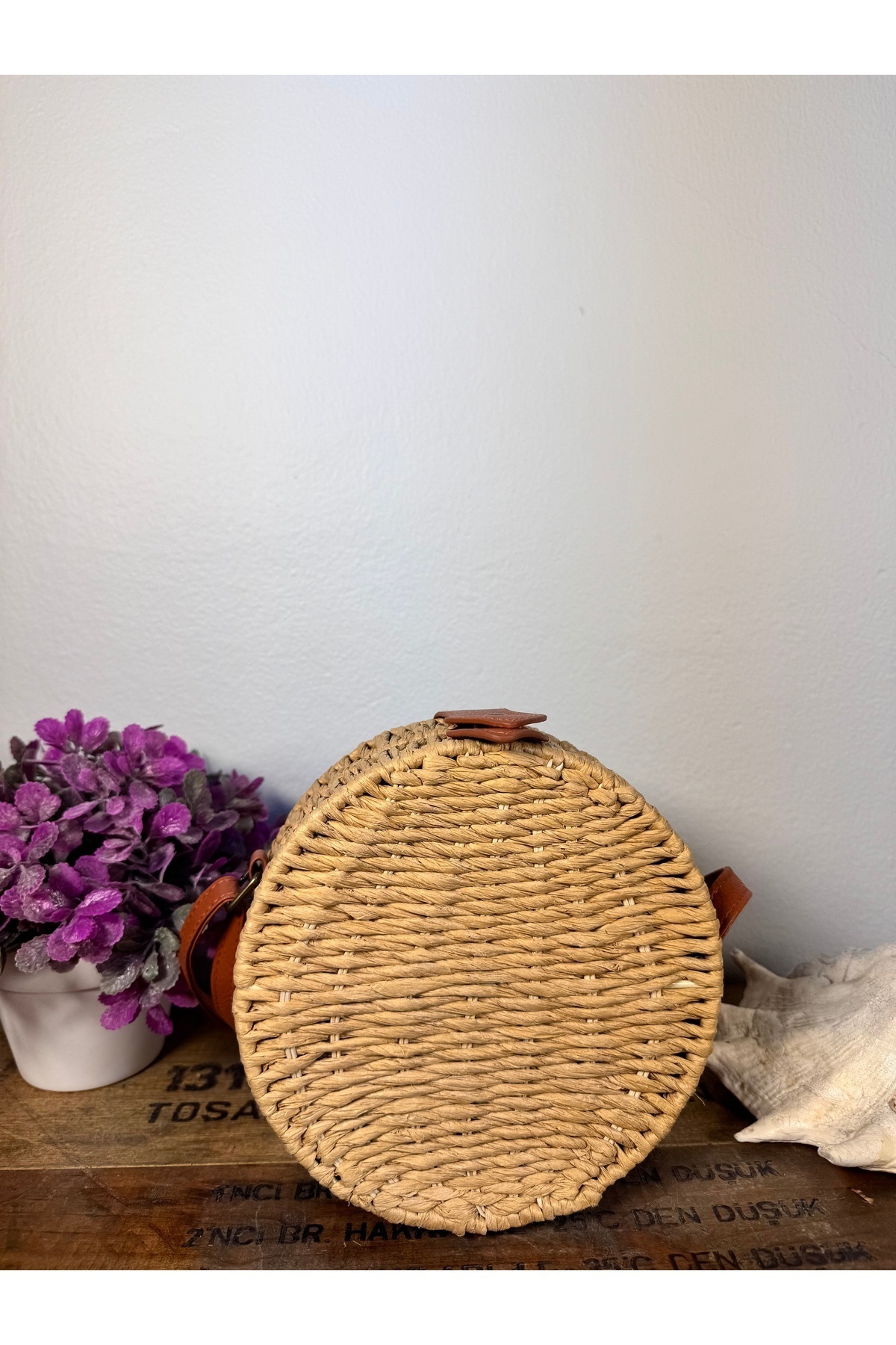 yuvarlak deri saplı hasır çanta yuvarlak deri saplı hasır çanta J2518Ç تک سایز