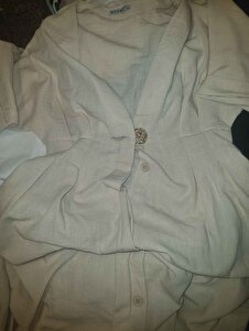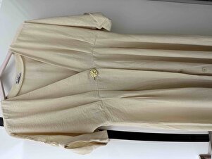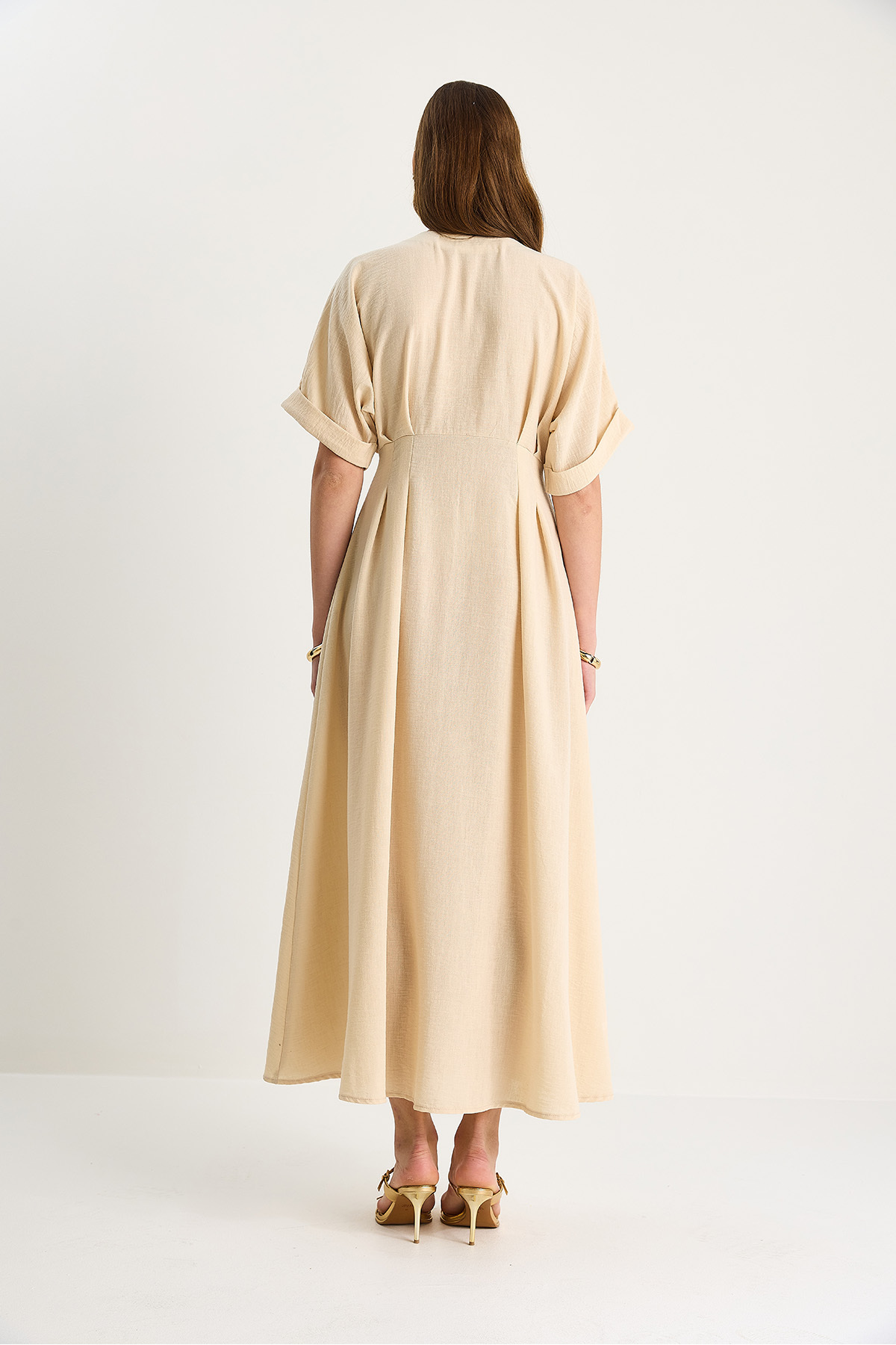Kadın V Yaka Gold Düğme Detaylı Keten Elbise 5266 60281107 Kadın V Yaka Gold Düğme Detaylı Keten Elbise 5266 60281107 40