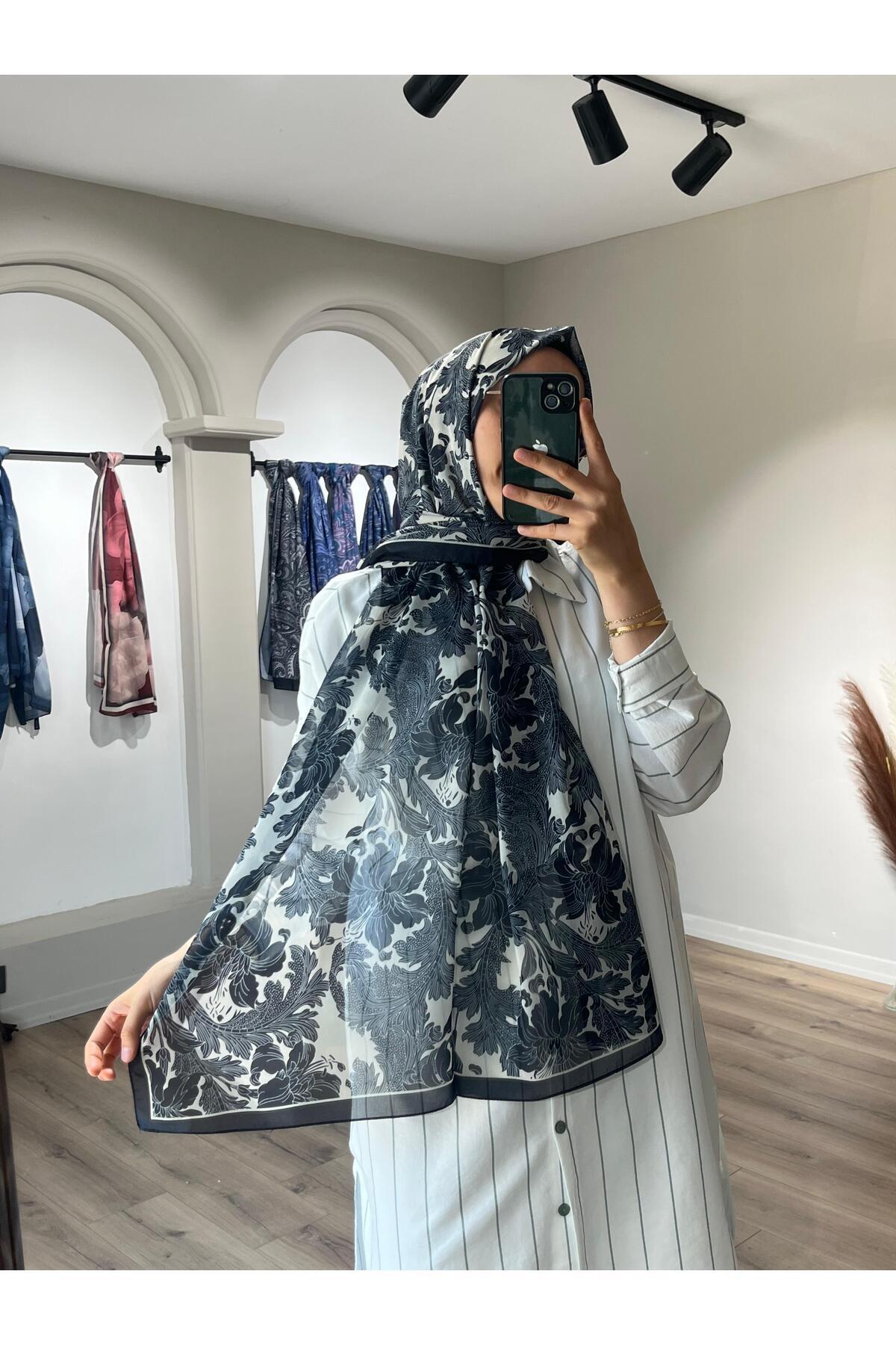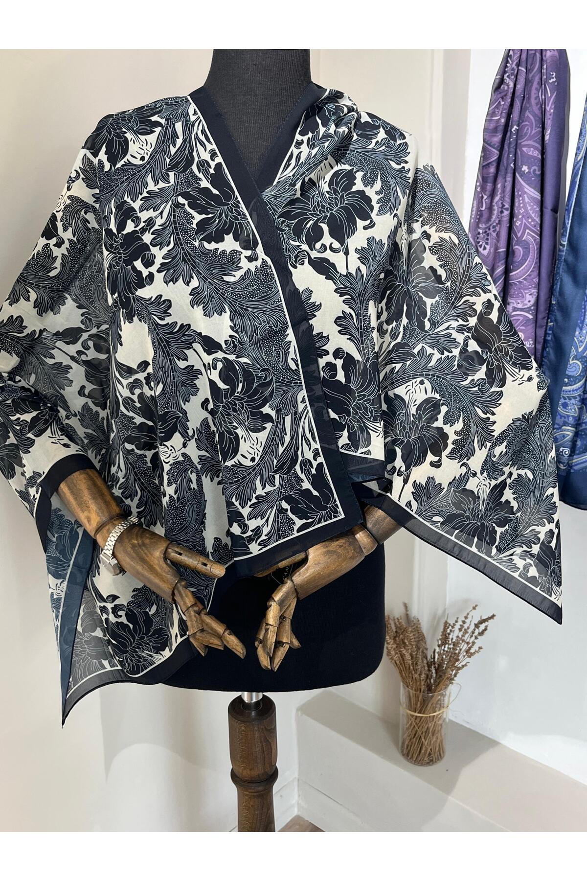Viena İpek Krep Siyah-Krem Şal Viena İpek Krep Siyah-Krem Şal viena-1 75 x 185