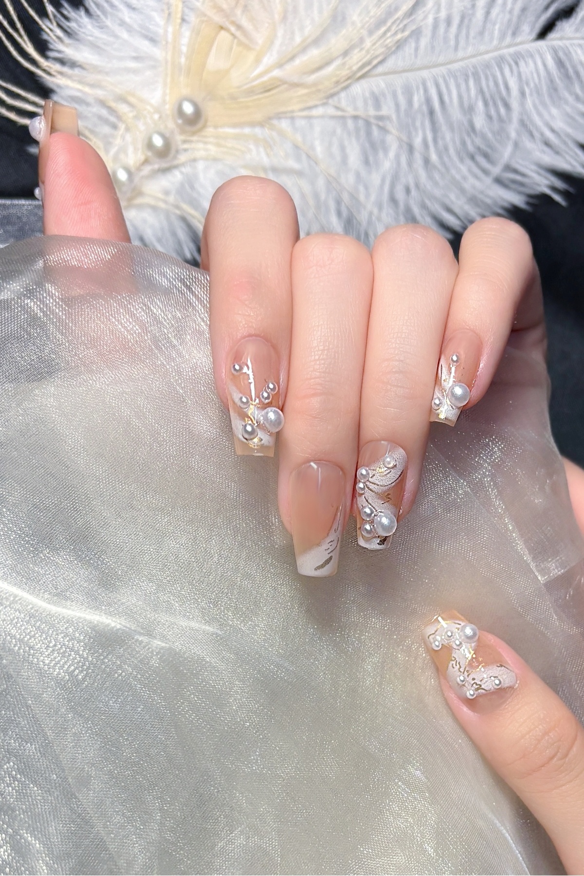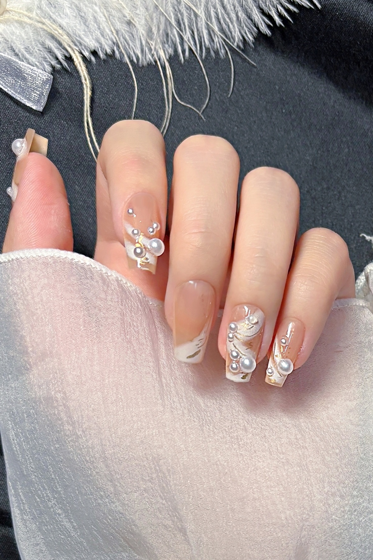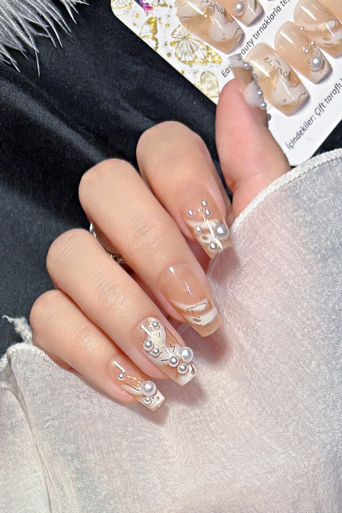 Küt Takma Tırnak İnci Taneli Orta Uzun 24 Adet Takma Tırnak Seti Z434 Küt Takma Tırnak İnci Taneli Orta Uzun 24 Adet Takma Tırnak Seti Z434 CESITLIMODEL تک سایز