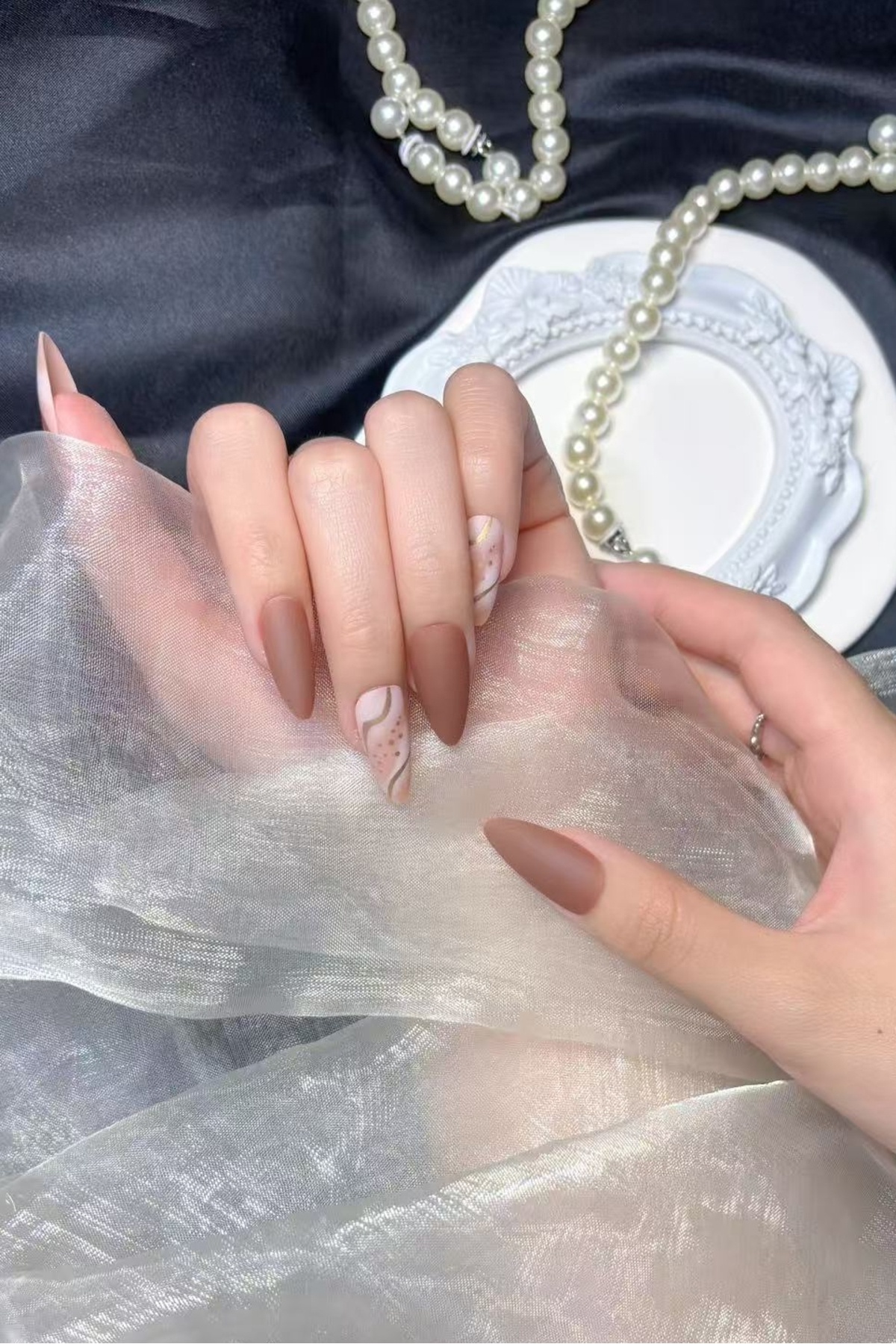 Badem Tırnak Kahverengi Orta Uzunlukta 24 Adet Takma Tırnak Seti W1489 Badem Tırnak Kahverengi Orta Uzunlukta 24 Adet Takma Tırnak Seti W1489 CESITLIMODEL تک سایز