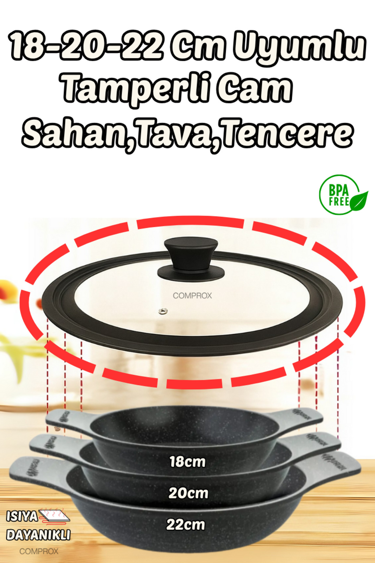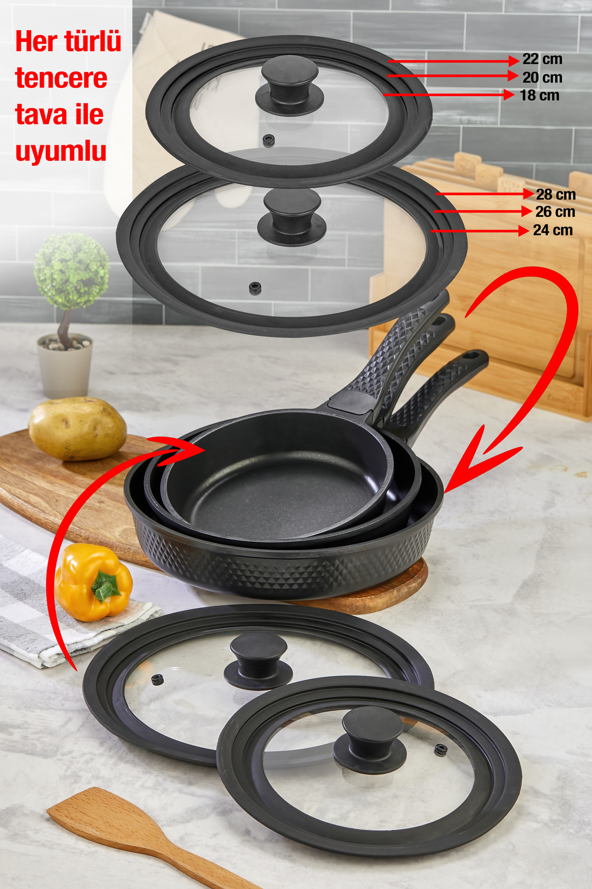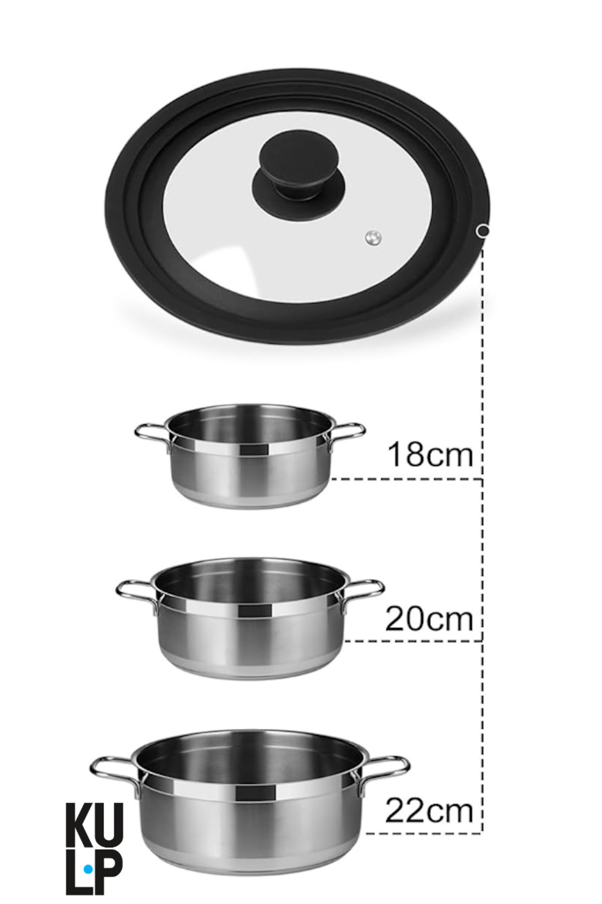 18/20/22 Cm Uyumlu Cam Tencere&Tava Kapağı Kademeli Silikon Kenarlı 18/20/22 Cm Uyumlu Cam Tencere&Tava Kapağı Kademeli Silikon Kenarlı SLCN1 تک سایز