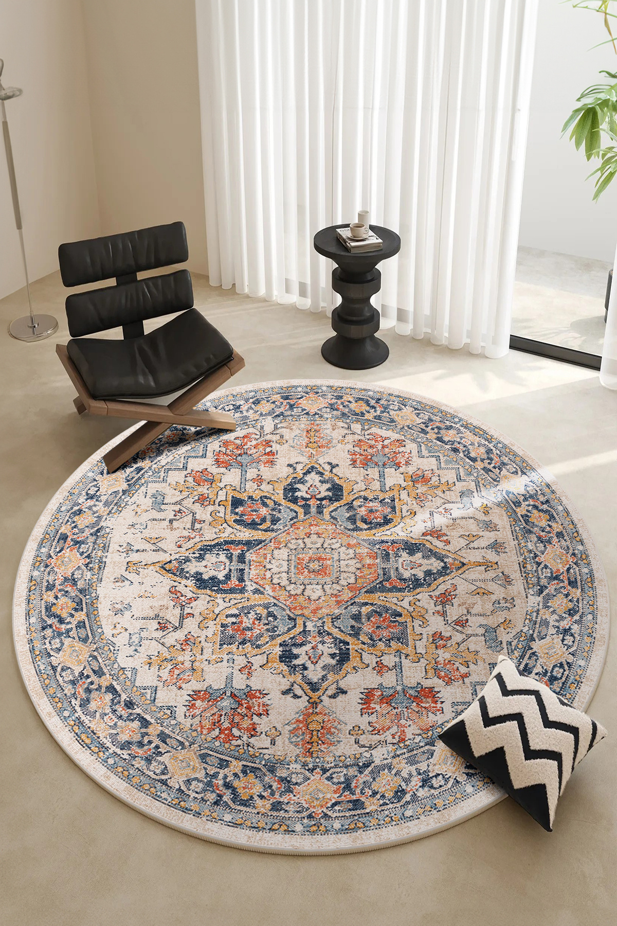 Dekoratif Özel Tasarım Yıkanabilir,İnce, Kaymaz Tabanlı, Vintage Halı, Bohem Halı Dekoratif Özel Tasarım Yıkanabilir,İnce, Kaymaz Tabanlı, Vintage Halı, Bohem Halı KECE-FR50BOY 180 x 180