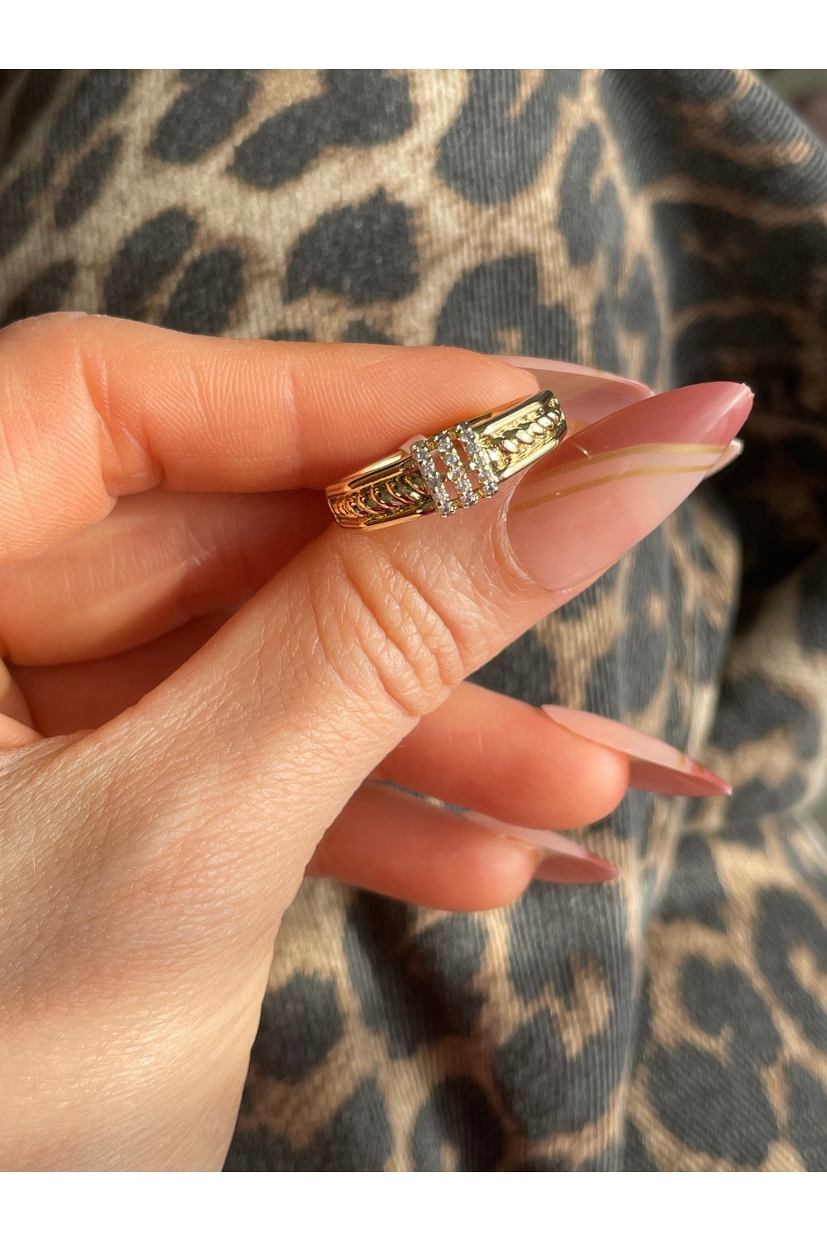 Zirkon taş detaylı gold yüzük Zirkon taş detaylı gold yüzük asw1 تک سایز