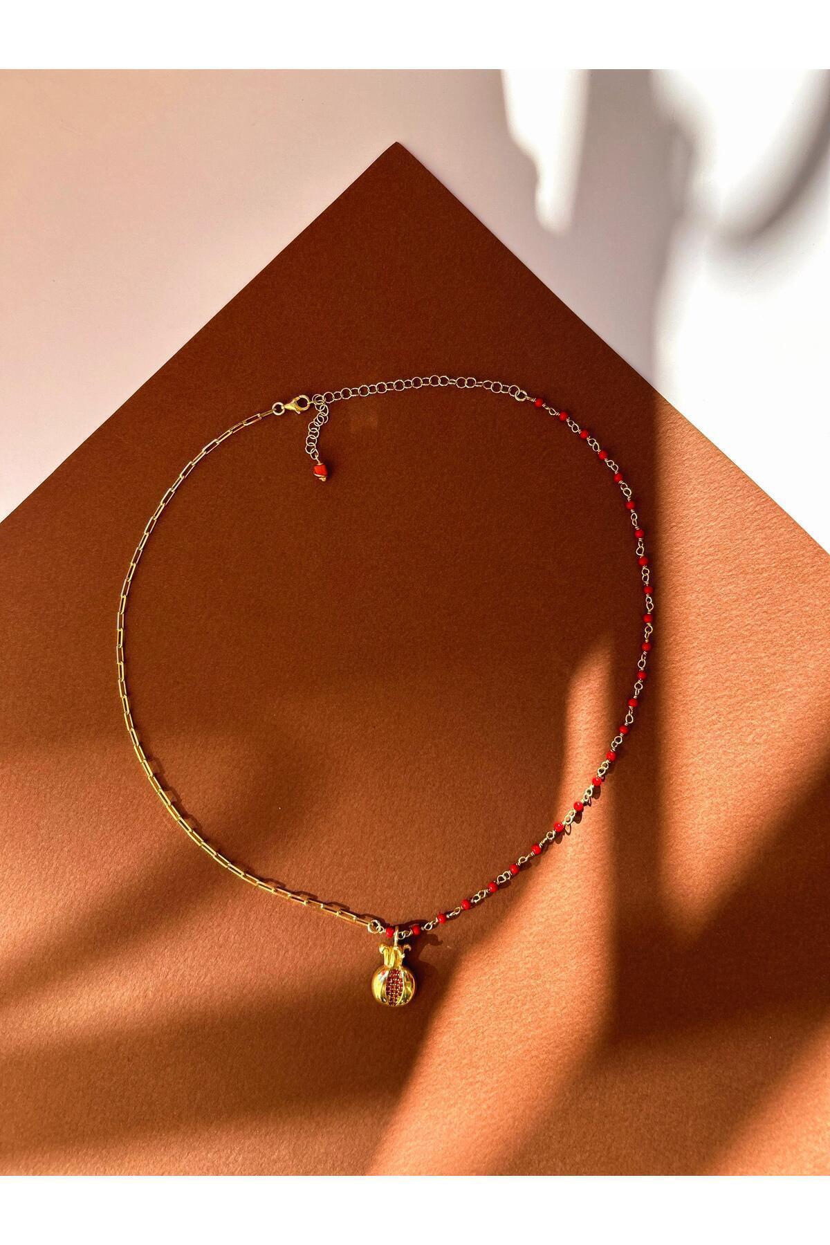 ALTIN KAPLAMA NAR MOTIFLI KOLYE ALTIN KAPLAMA NAR MOTIFLI KOLYE NK0043 45 cm