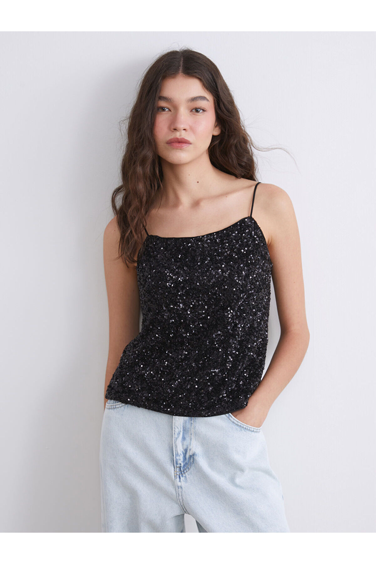 KADIN İP ASKILI İÇİ ASTARLI PAYET BLUZ KADIN İP ASKILI İÇİ ASTARLI PAYET BLUZ 34EDFVGBH 3XL