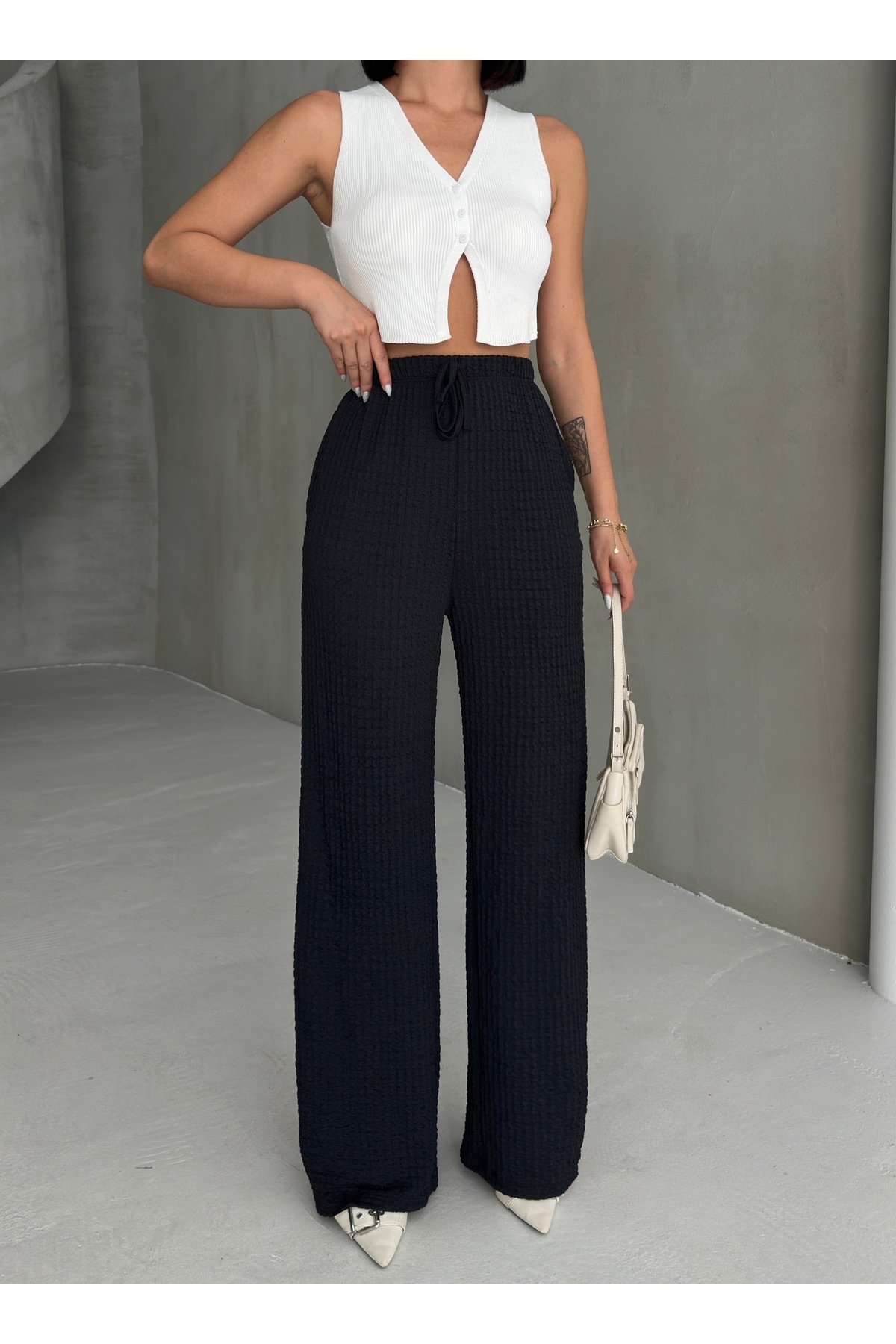 Kadın Gofre Kumaş cepli Pantolon Kadın Gofre Kumaş cepli Pantolon gofre alt L