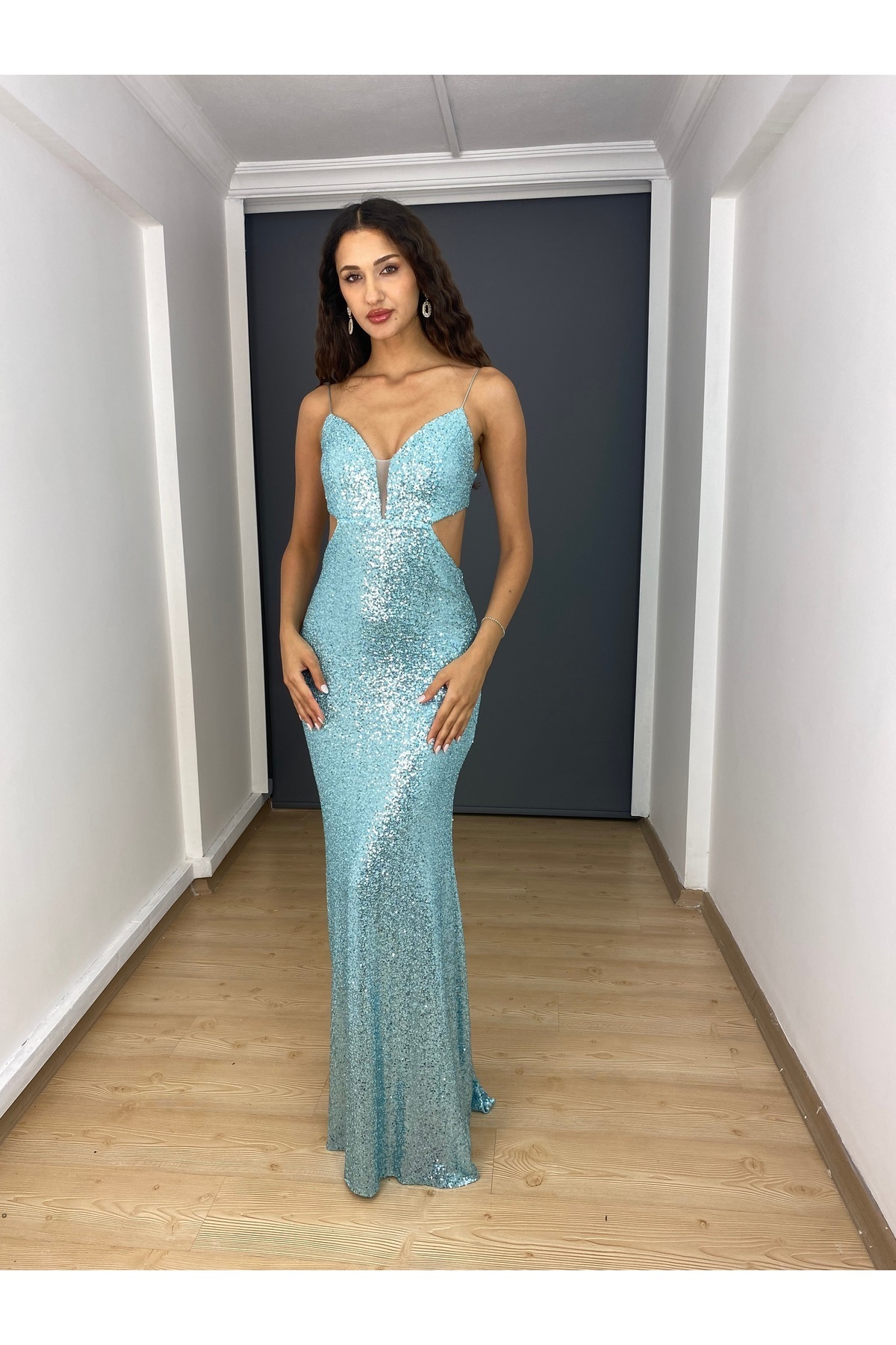 Lila Payet Sırt Dekolteli Uzun Abiye Elbise Lila Payet Sırt Dekolteli Uzun Abiye Elbise G4001 38