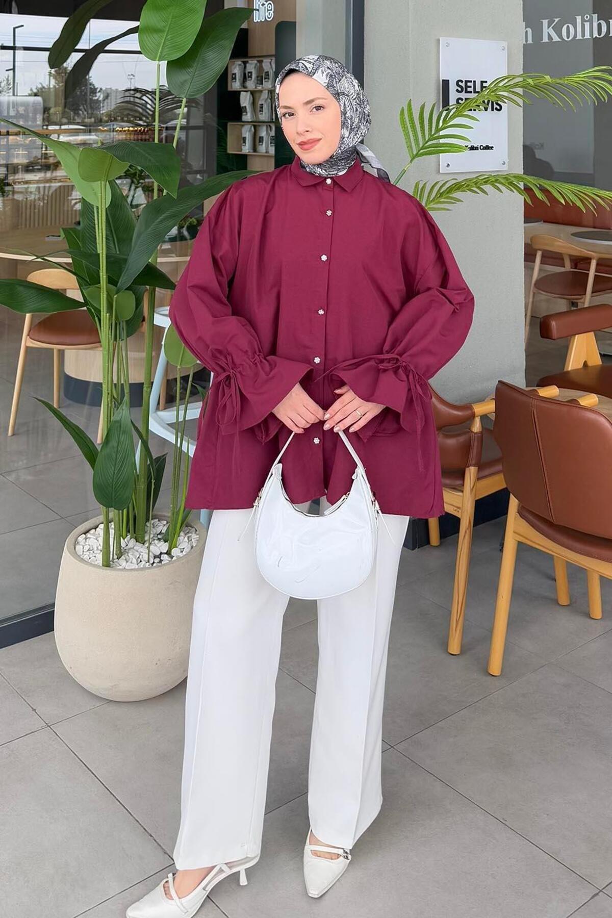 Piliseli Uzun Gömlek Bordo Piliseli Uzun Gömlek Bordo HNZ8973 XL