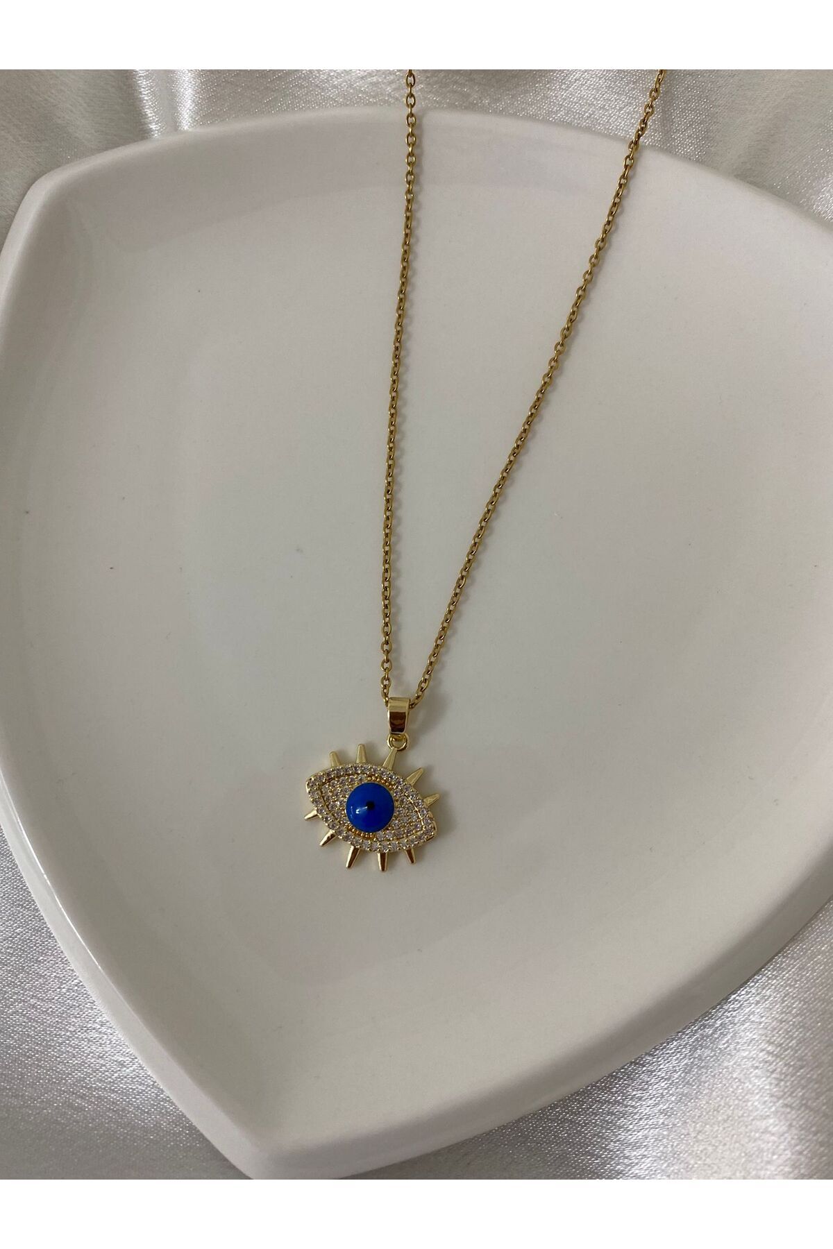 Zirkon Taşlı Göz Figür Çelik Kolye Zirkon Taşlı Göz Figür Çelik Kolye göğzz 45 cm