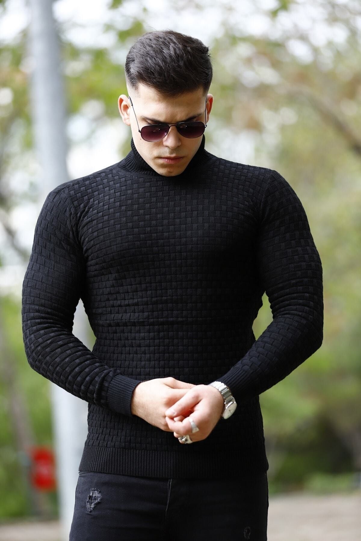 Füme Fitilli Tam Boğazlı Pamuk Karışım Erkek Triko - Extra Slim Fit Füme Fitilli Tam Boğazlı Pamuk Karışım Erkek Triko - Extra Slim Fit P202060801 L/XL