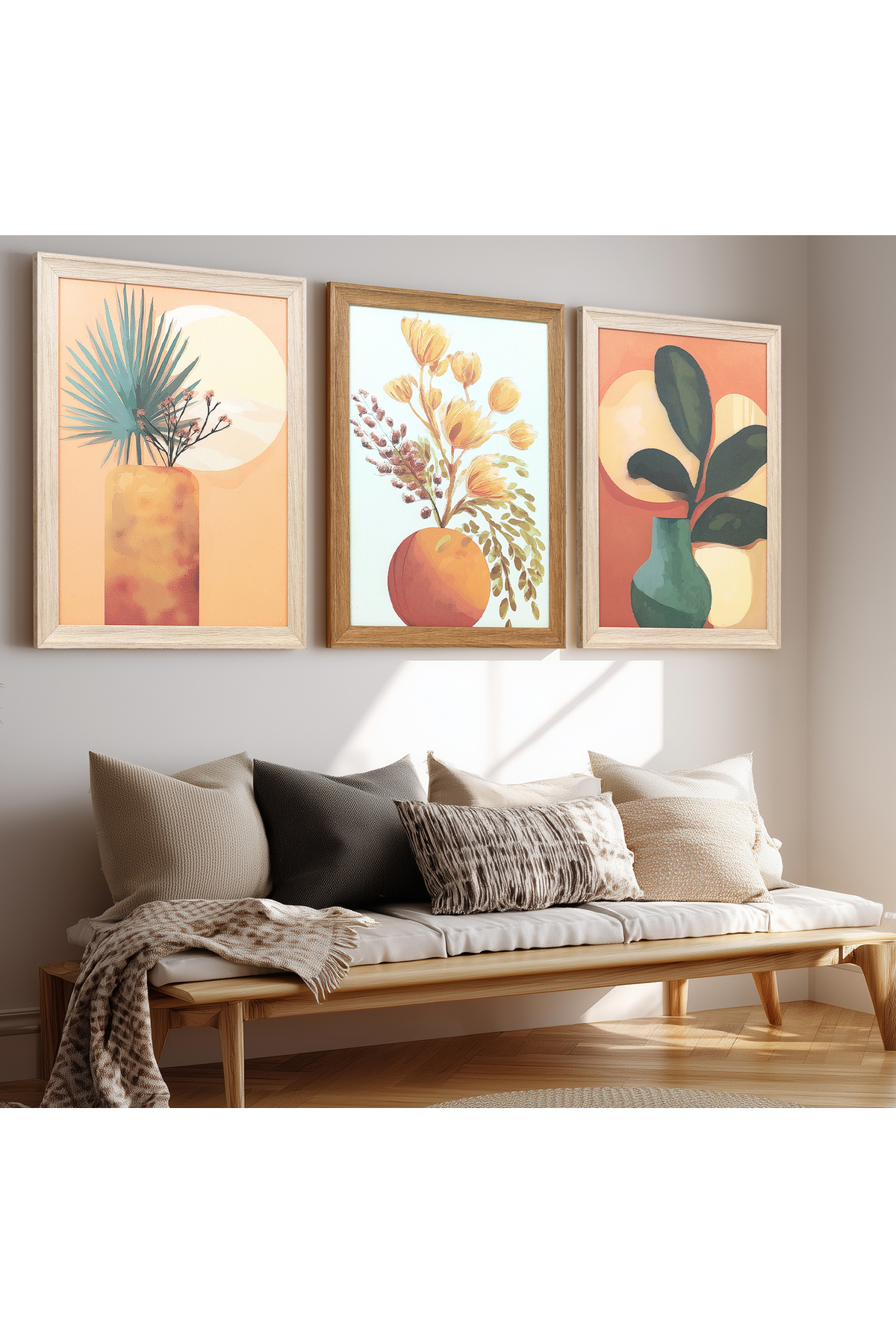 Çerçeveli 3'lü Tablo Set - Duvar Dekoru Soyut Tabloları - Tessaria Çerçeveli 3'lü Tablo Set - Duvar Dekoru Soyut Tabloları - Tessaria TBLMRKTMDF12 50 x 70