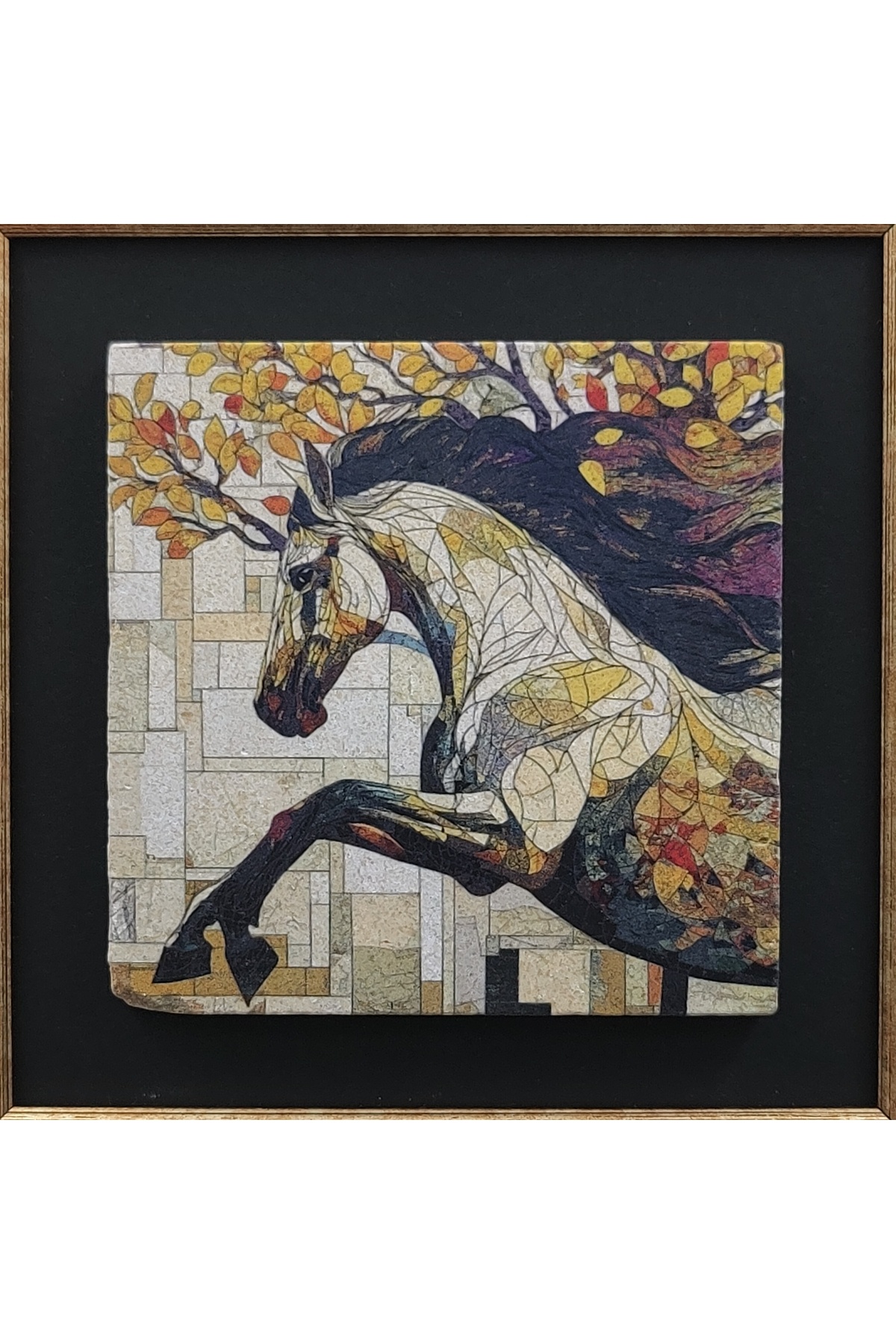 Çerçeveli Doğal Taş Üzerine Mozaik At Temalı Baskı tablo (Süvari) Çerçeveli Doğal Taş Üzerine Mozaik At Temalı Baskı tablo (Süvari) TBLMRKT12 25 x 25