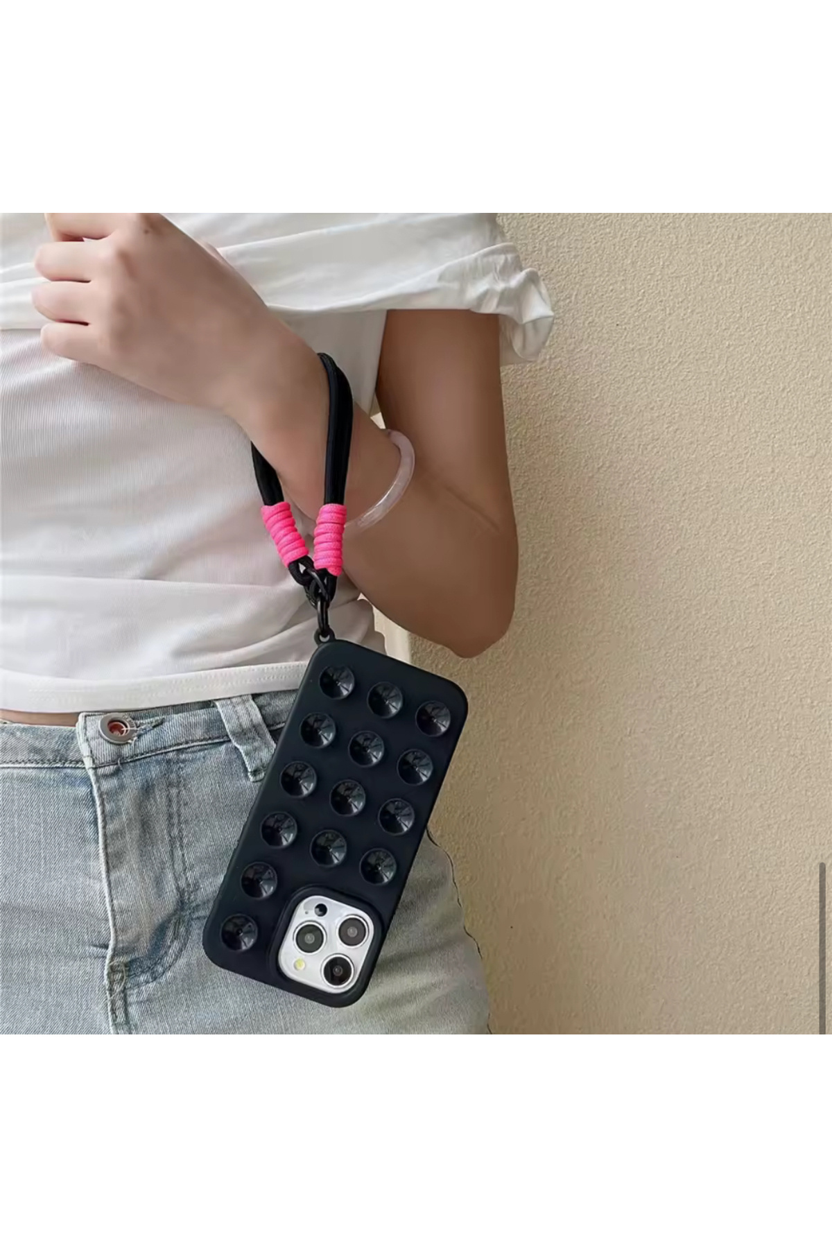Iphone 16 Pro (6.3 inç) Uyumlu Vakumlu Vantuz Özellikli Bilek Askılı Telefon Kılıfı Iphone 16 Pro (6.3 inç) Uyumlu Vakumlu Vantuz Özellikli Bilek Askılı Telefon Kılıfı 16 Pro Vantuzlu Kılıf Mmc تک سایز