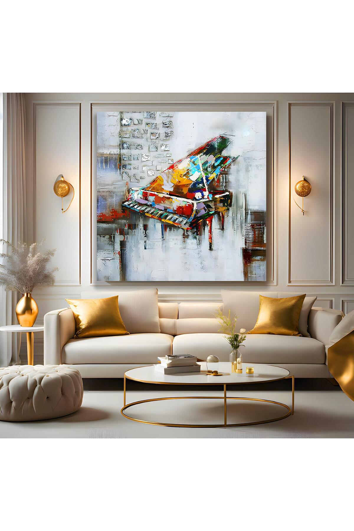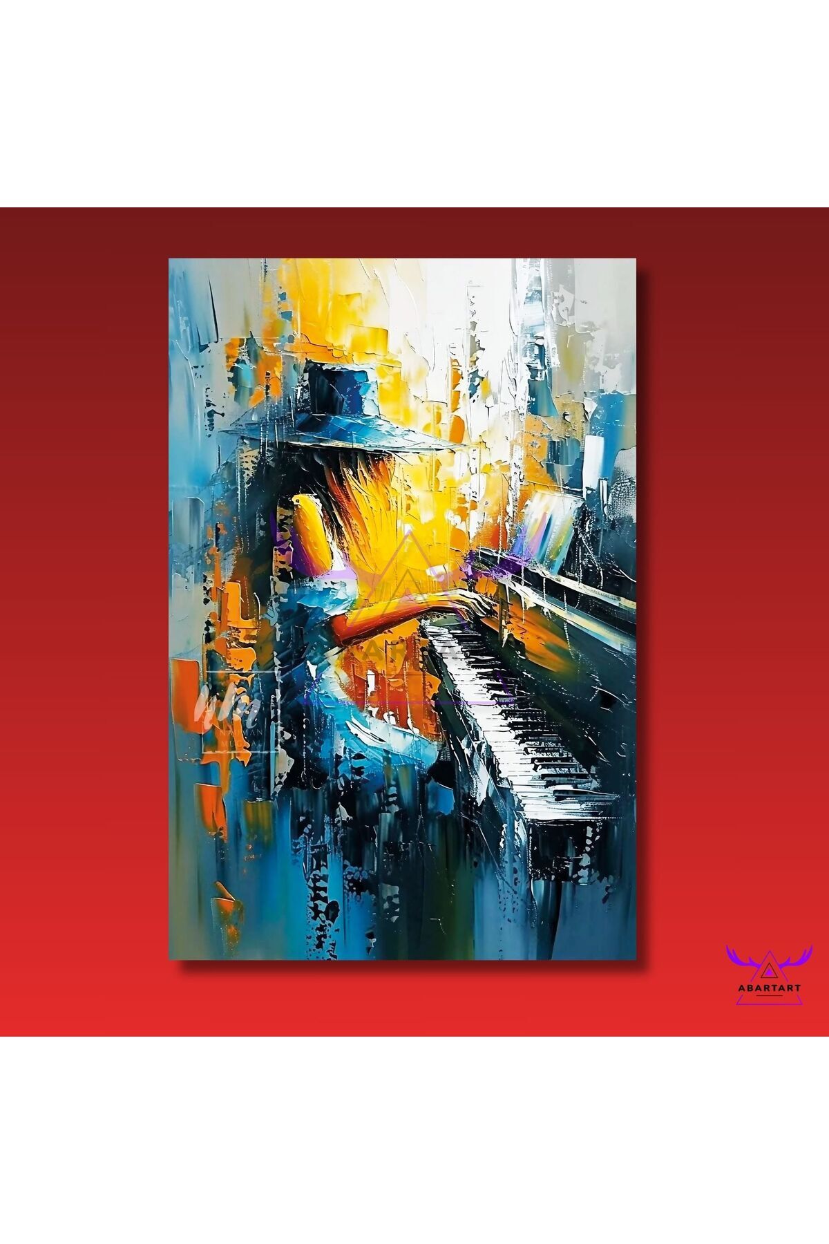 Tekli Dikey Kanvas Yağlı Boya Görünümlü Çok Renkli Piyano Çalan Fötr Şapkalı Kız Tablosu Tekli Dikey Kanvas Yağlı Boya Görünümlü Çok Renkli Piyano Çalan Fötr Şapkalı Kız Tablosu ABARTART-DK-0326 100 x 150