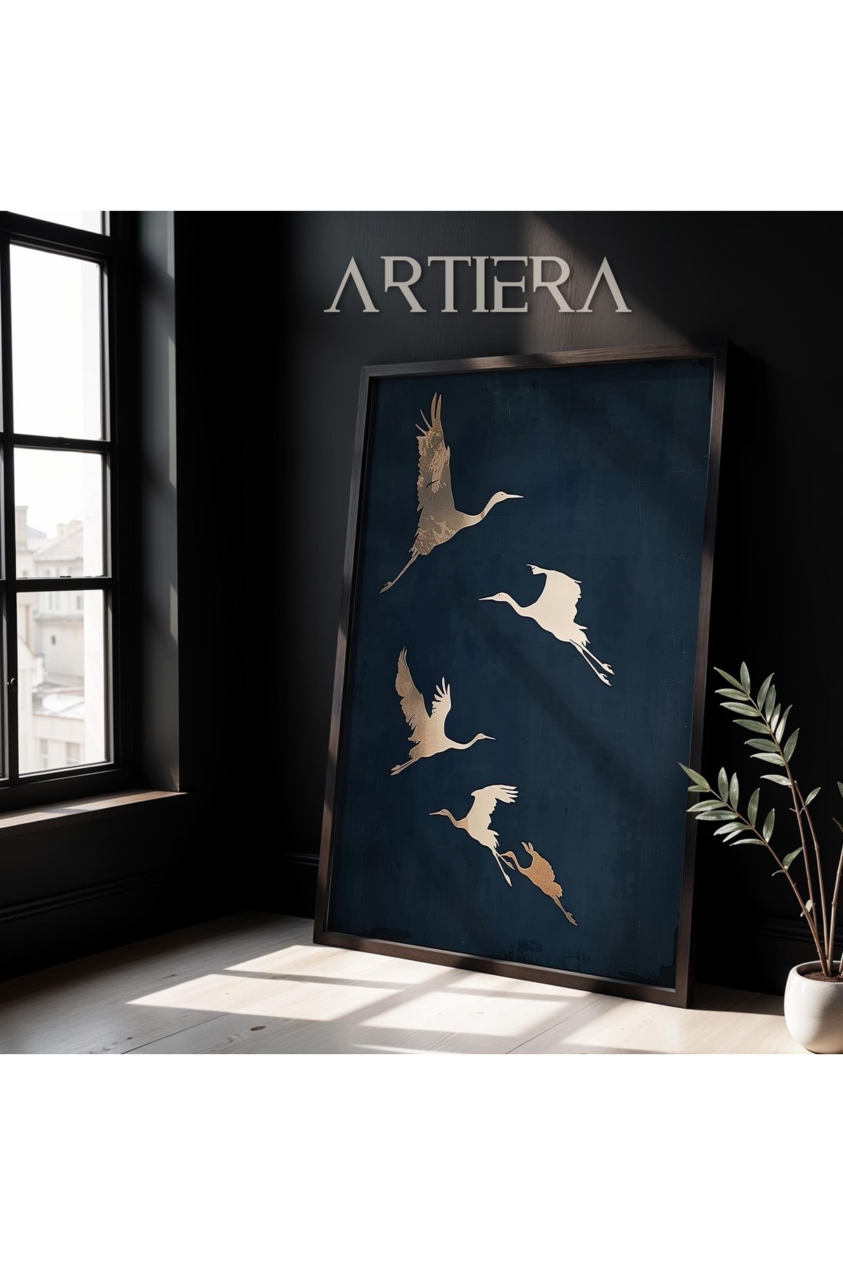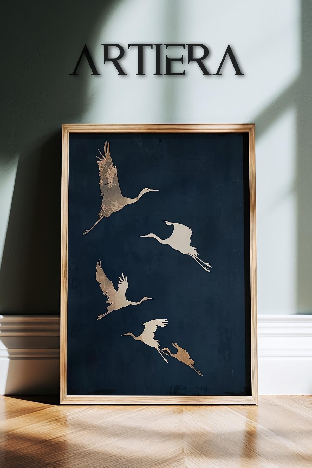 Mavi Fonlu Balıkçıl Kuşlar Vintage Japandi Sanatı Doğal Ahşap Çerçeveli Duvar Tablosu Mavi Fonlu Balıkçıl Kuşlar Vintage Japandi Sanatı Doğal Ahşap Çerçeveli Duvar Tablosu JPND-214 50 x 70