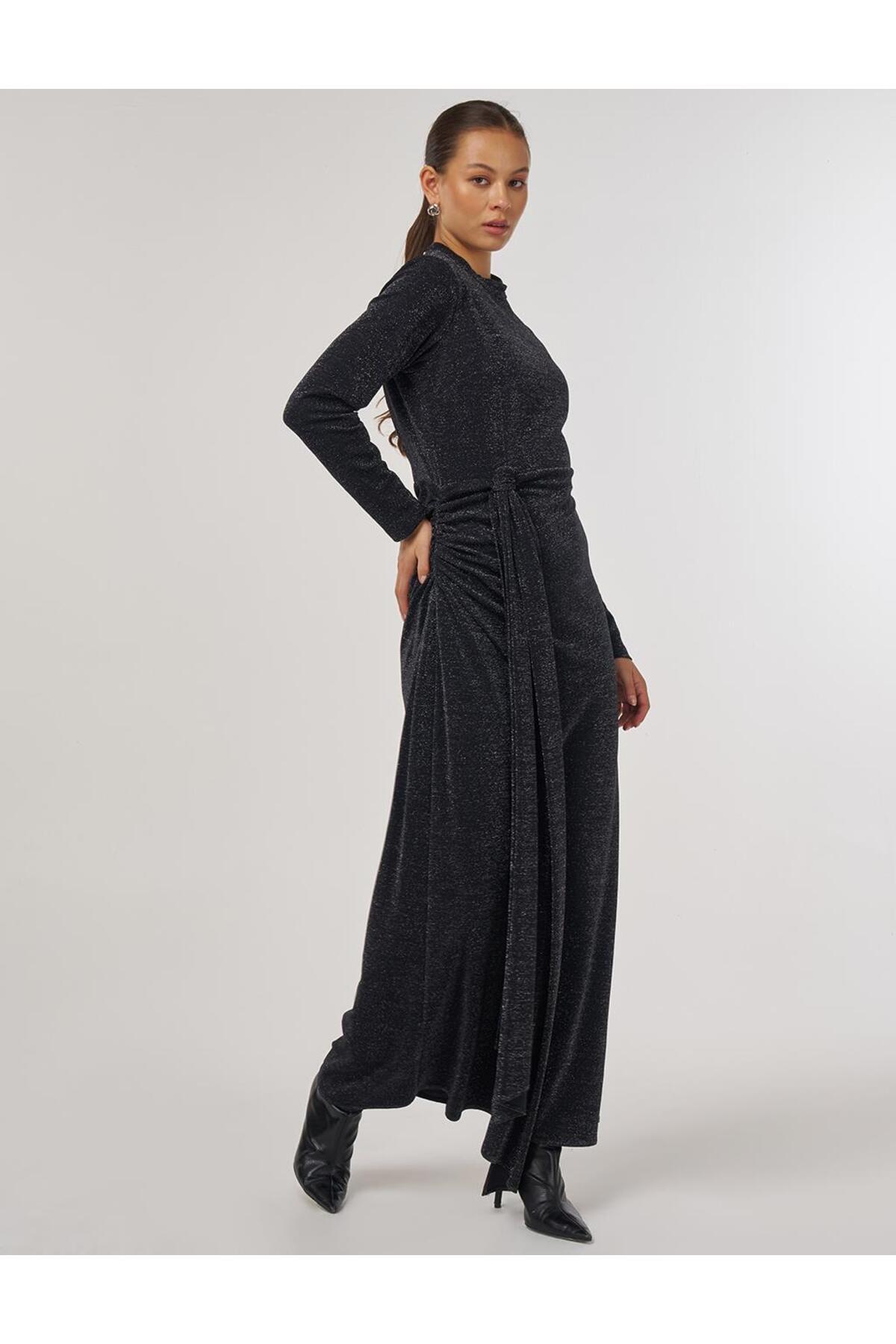 Bel Düğümlü Şık Elbise Siyah Bel Düğümlü Şık Elbise Siyah KA-A25-23012 44