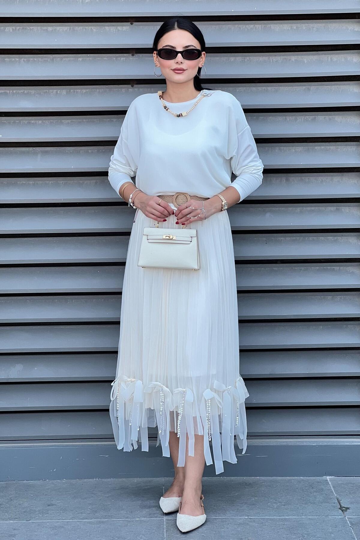 Etek Ucu Fiyonklu Zincirli Pliseli Tül Etek Etek Ucu Fiyonklu Zincirli Pliseli Tül Etek MHLETK1451 Standart