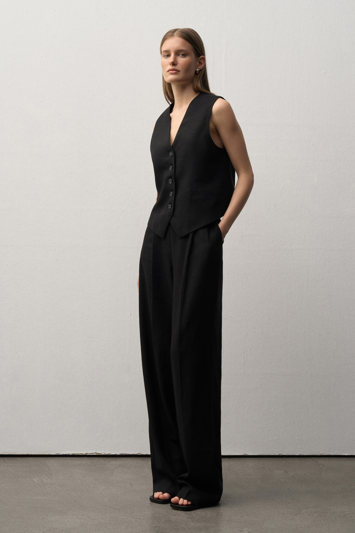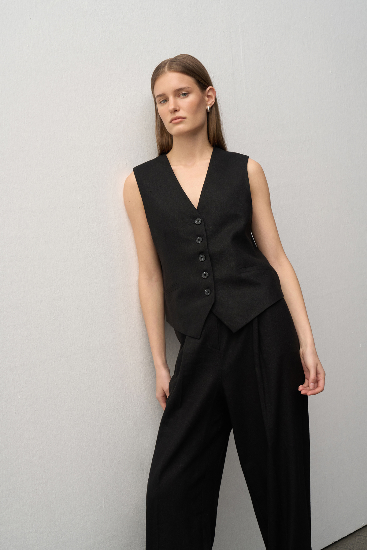 Kadın Siyah V Yaka Keten Yelek Kadın Siyah V Yaka Keten Yelek MTH46124 L