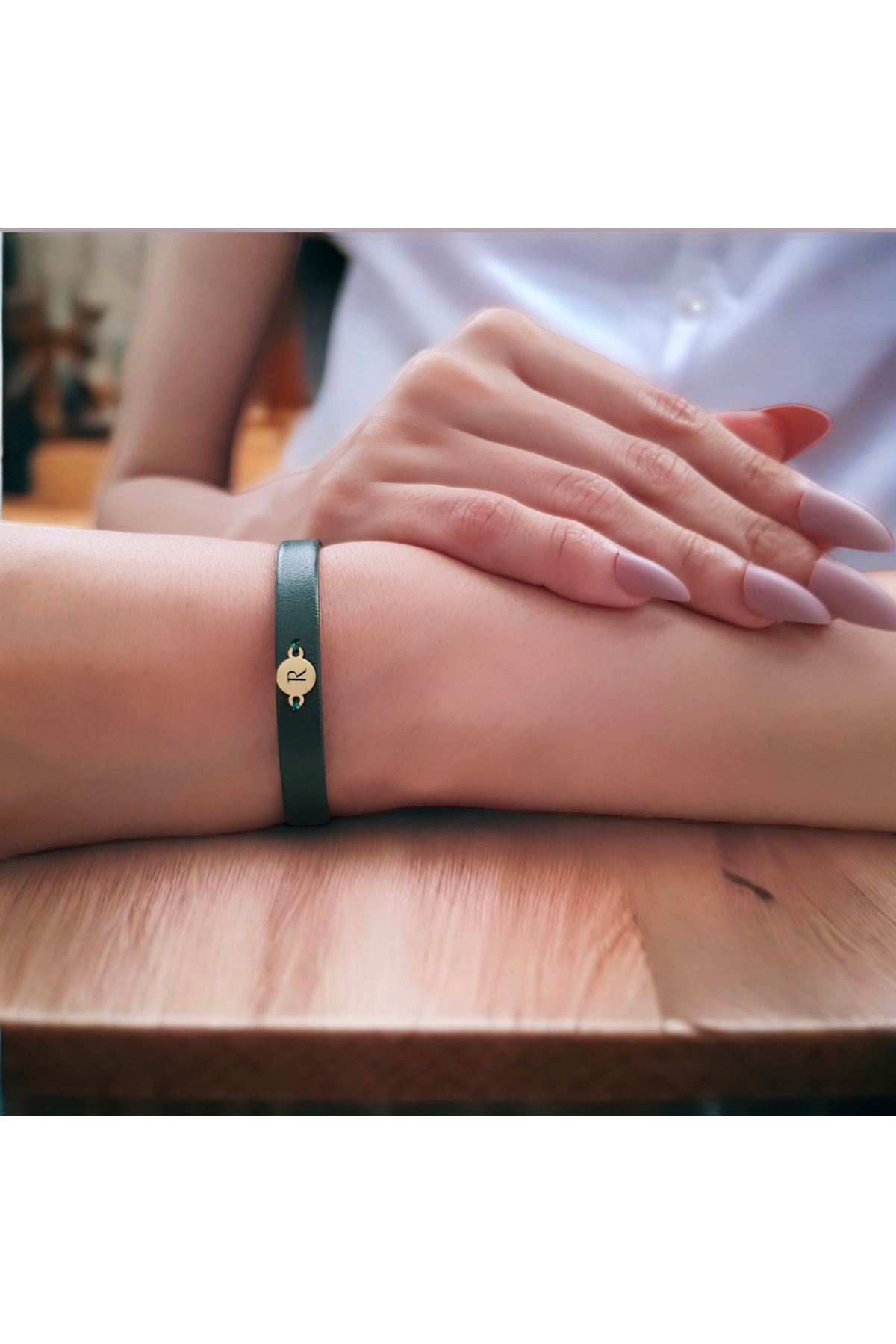 Altın Plakalı 14 Ayar R Harfine Özel Yuvarlak Motifli Doğal Yeşil Derili Hediye Bileklik-428harf Altın Plakalı 14 Ayar R Harfine Özel Yuvarlak Motifli Doğal Yeşil Derili Hediye Bileklik-428harf 428-febyesaud-GAFAYES-T-MO2 22 cm